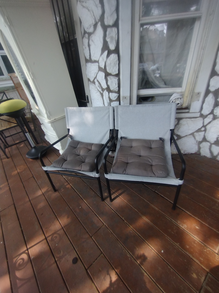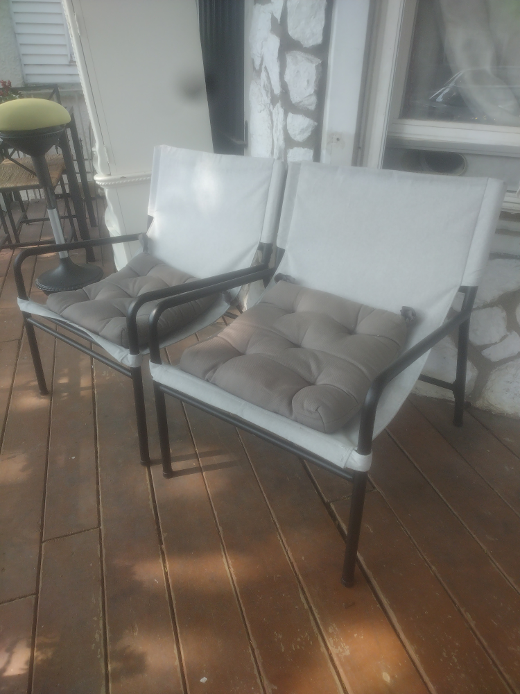 1 / 21 / 2Buy & SellOutdoor Chairs with CushionsOutdoor Chairs with Cushions$23Two chairs with cushions. Features a dark frame. Cushions appear to be a neutral color. These chairs are perfect for enjoying the sunset after a long day.ConditionGoodWHERE TO MEETCheck LocationView MapSELLERverifiedRoseAustin18211 reviews1 chats·2 favorites·231 viewsSEND CHAT TO SELLERHi Rose! I’m interested in your listing.Hi Rose! I’m interested in your listing.Get the Karrot app to chatSign In to chat