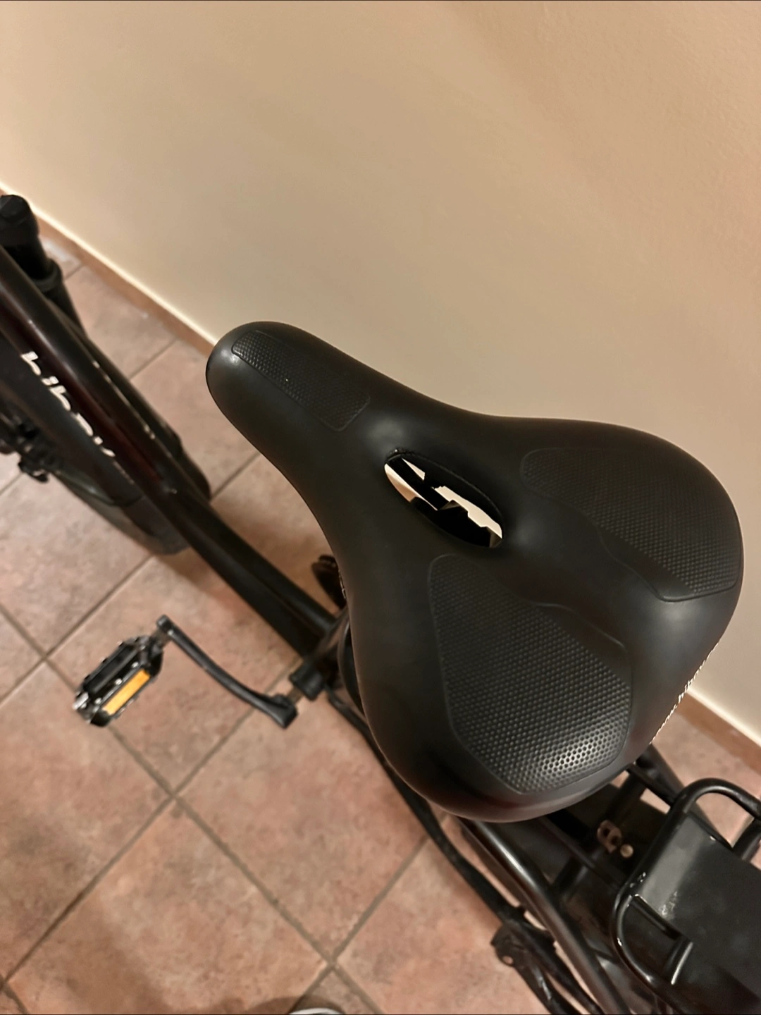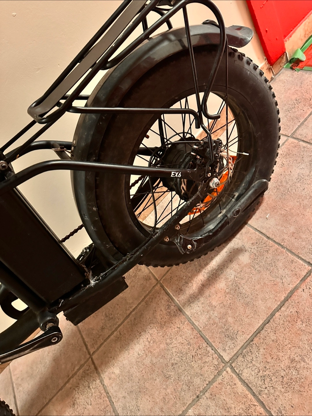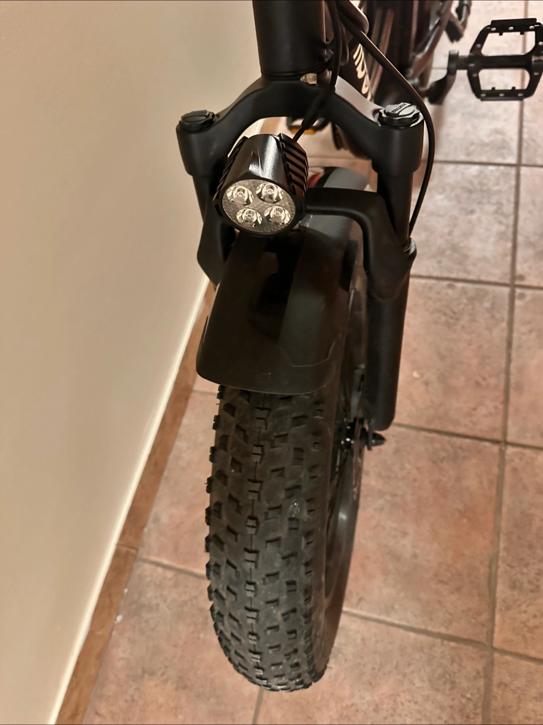 A black electric bicycle, featuring fat tires. Front and rear fenders. Comes with front lights. Display is shown on the handlebars. I changed the battery but otherwise in really good condition.