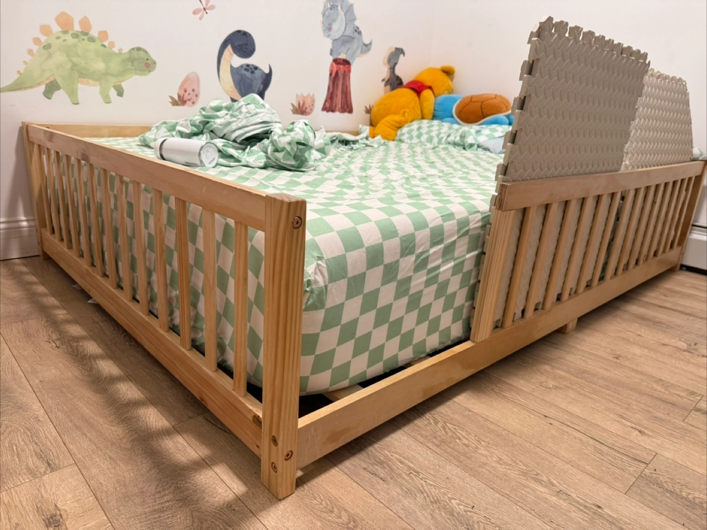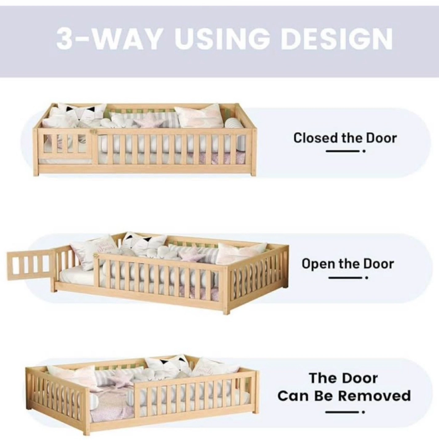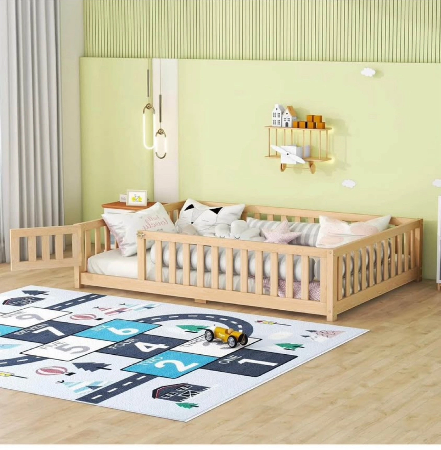 21A sturdy wooden toddler bed, designed to be a secure and cozy space for your little one. Featuring a solid wooden frame, with slatted sides and a door that can open or be removed. Your child can drift off to sleep in this bed knowing they are safe and secure.