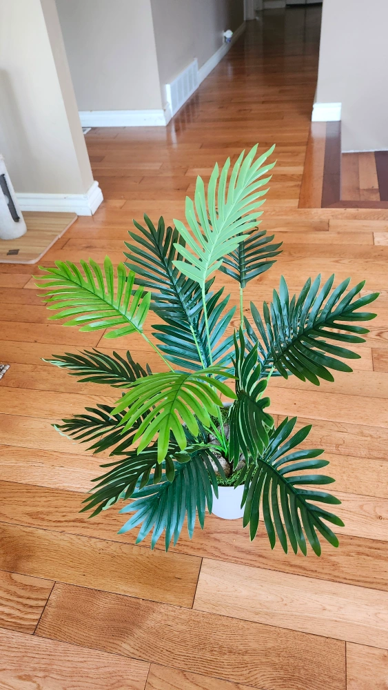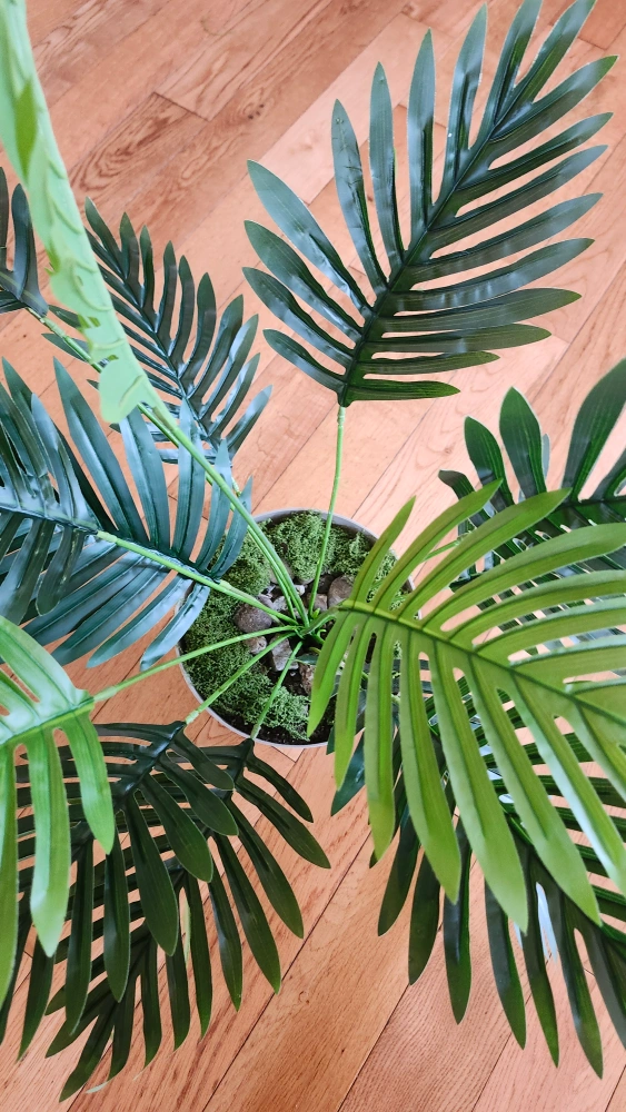 An artificial plant. Comes in a pot with artificial moss. Offers a mix of dark and light green leaves. Perfect for adding some life into any space.