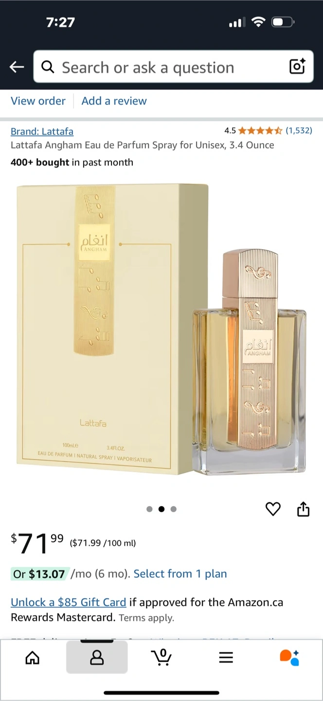 A bottle of perfume in a rectangular shape. Contains liquid of a gold color. Comes with the original packaging. This would make a wonderful gift for a loved one.