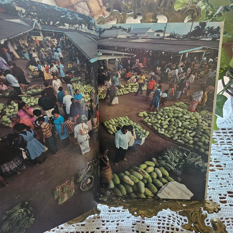 This is a hardcover book featuring vivid photographs and text exploring the magical allure of the Pacific Islands. The book covers islands such as Samoa, Tonga, Fiji, Tahiti, the Cooks, and Hawaii. It contains 200 pages and is considered a first edition.