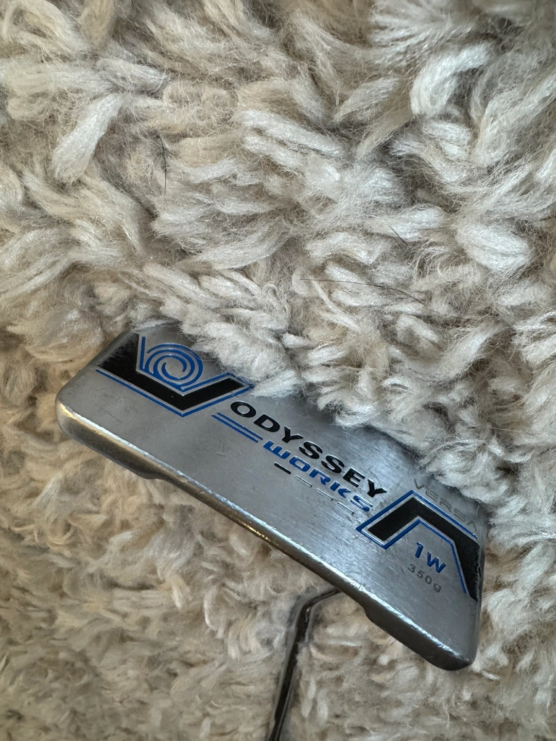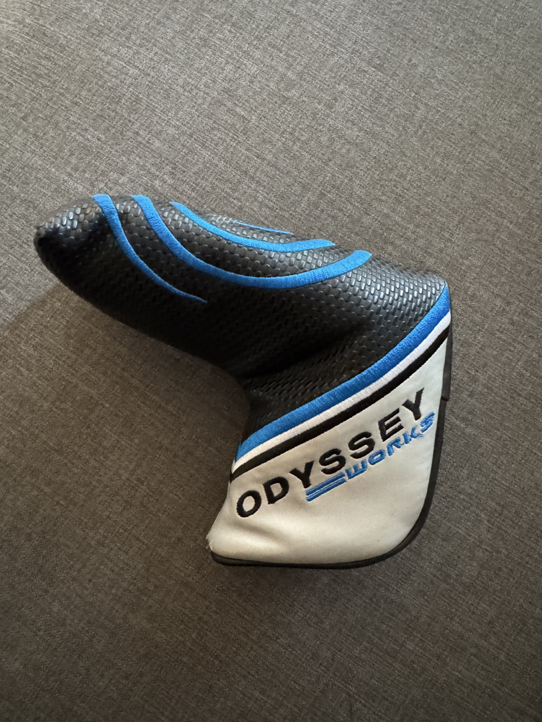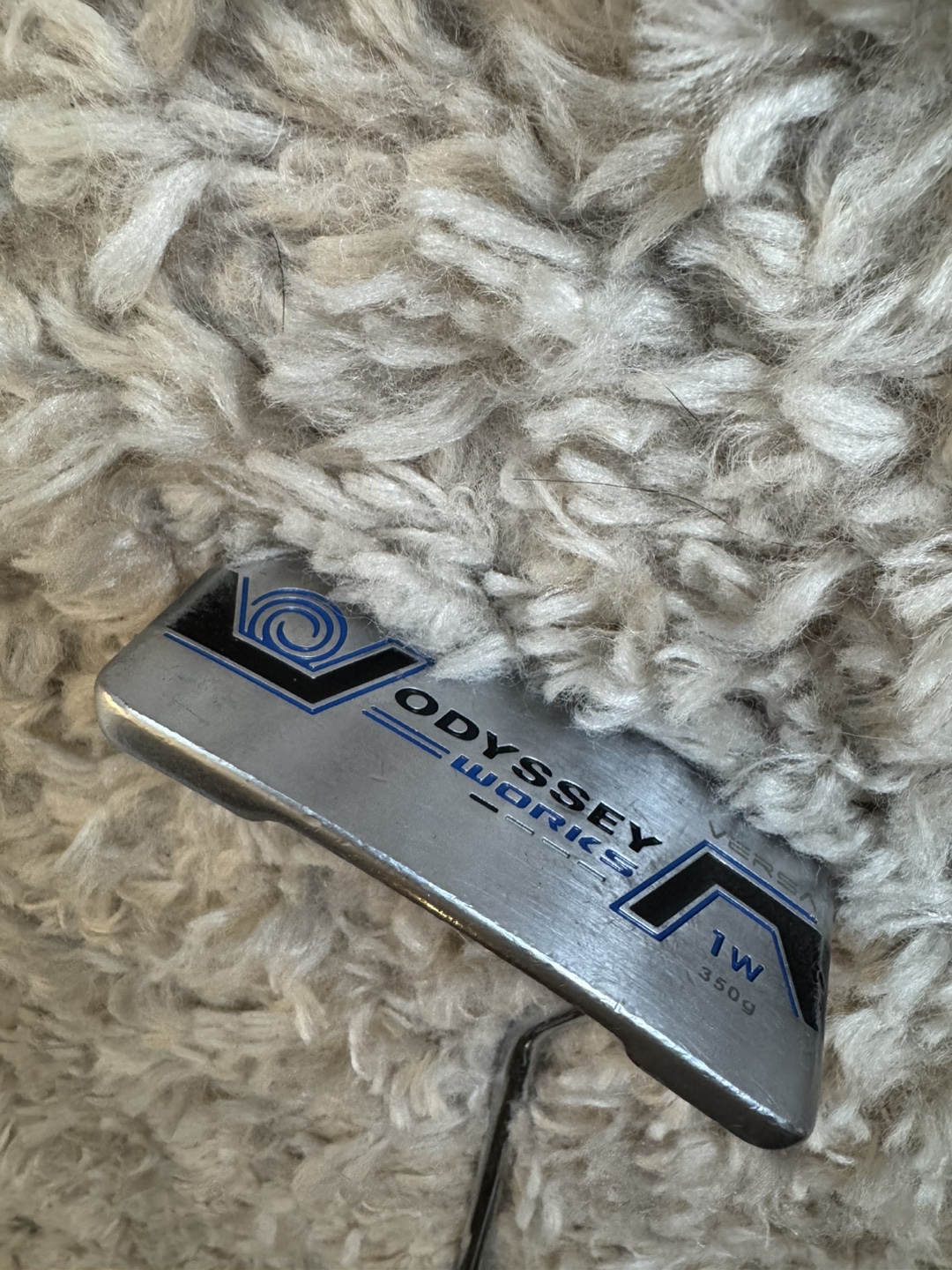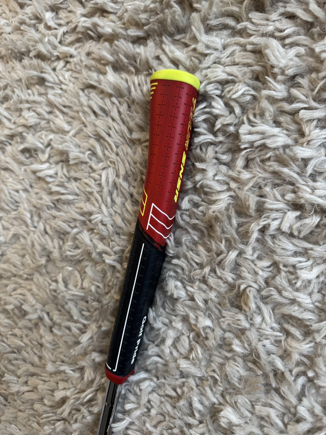 A beautiful putter with a long shaft. It features a red and black grip. A great item to have in your bag to keep your nerves calm when you're putting. Includes head cover. Right hand, 35 in.