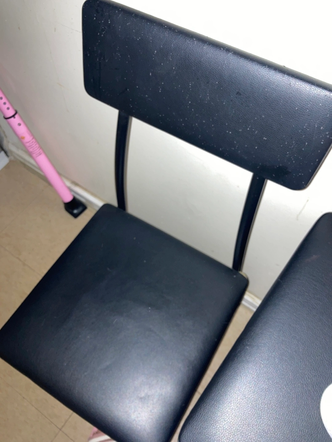 Black colored dining chairs. Set of 3. Features a small back. Perfect for a comfortable and productive work day.
