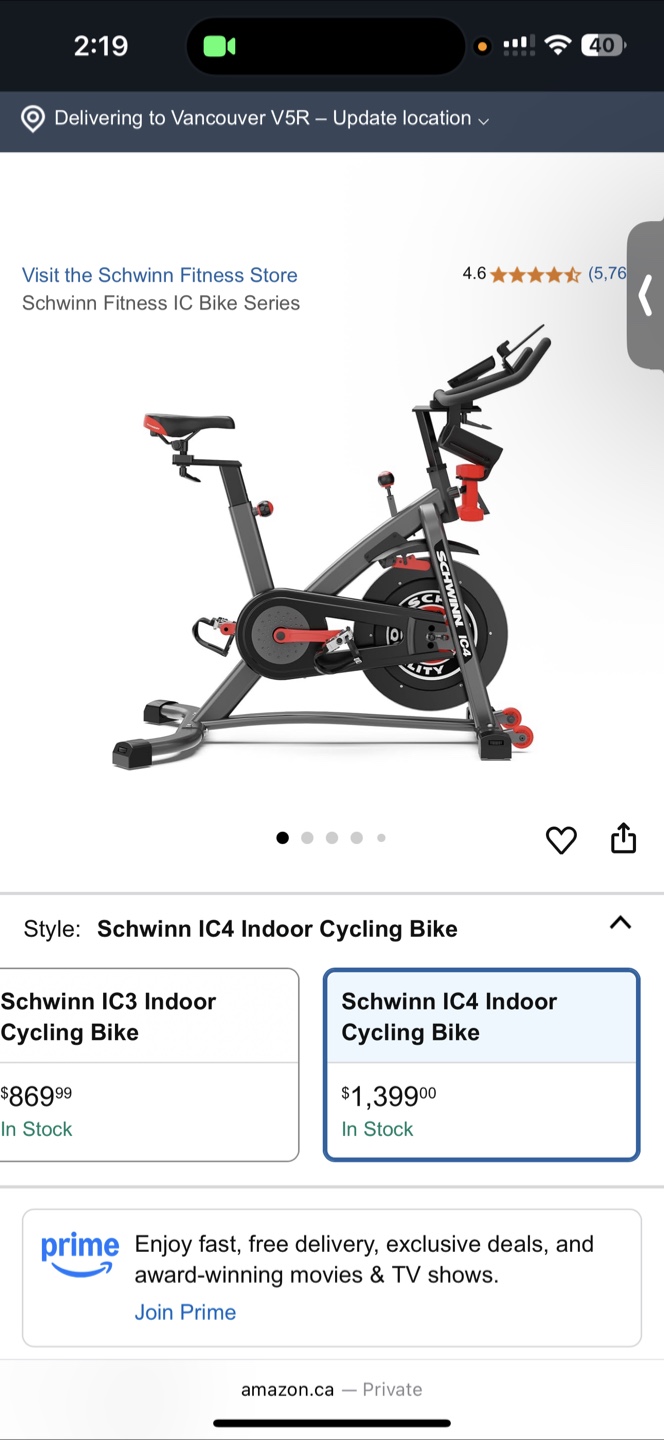 Originally $1400-Schwinn IC4 Indoor Cycling Bike