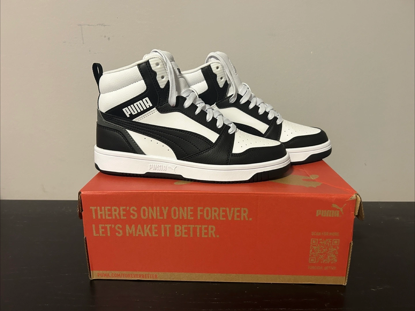 Brand new pair of stylish sneakers. Black and white colourway in the original box. Size is woman’s 5.5, EUR 36, or youth 4.5