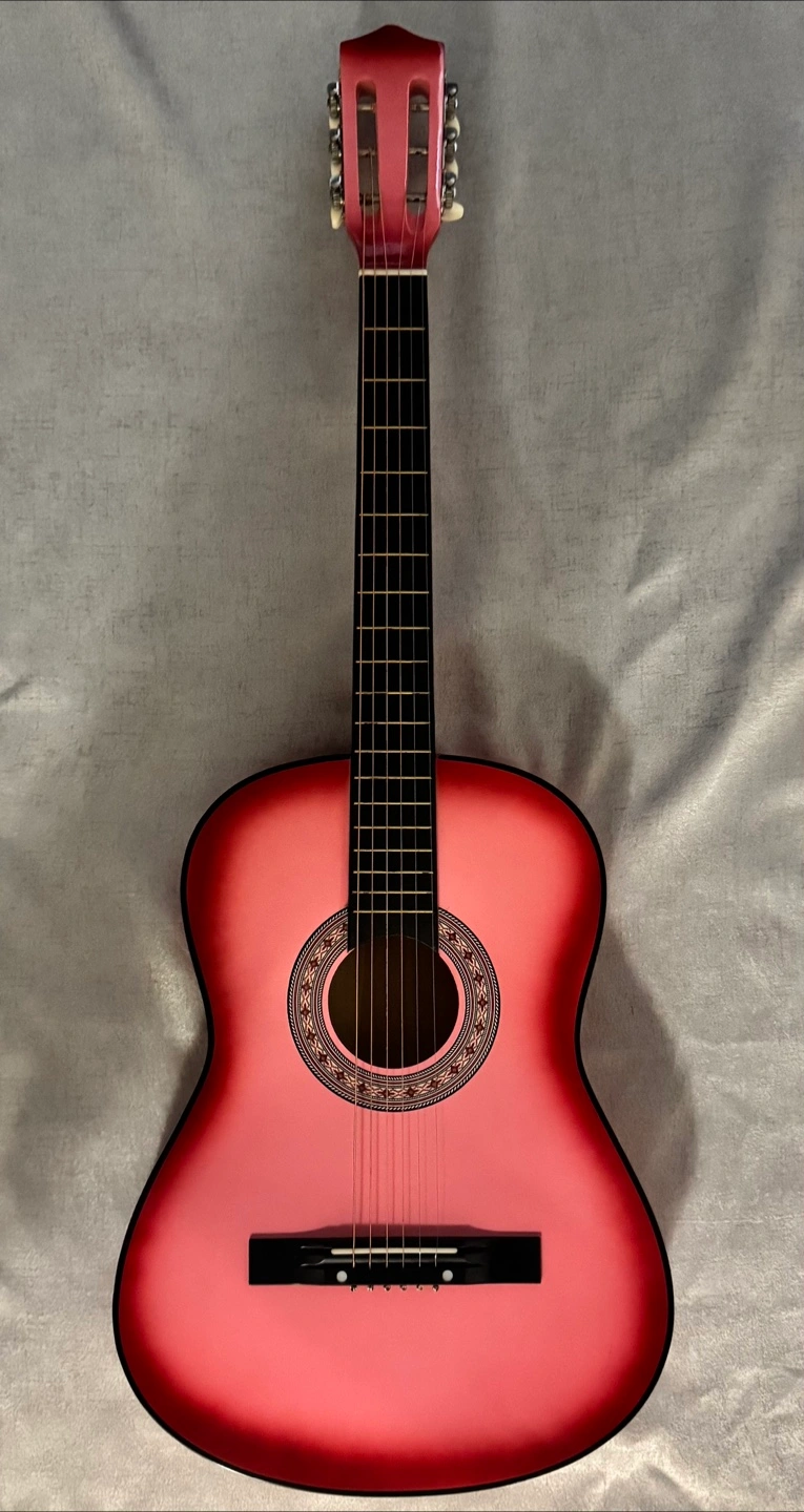 Brand new . Acoustic guitar. Red in color. Comes with an instruction manual, tuner, picks, guitar strap, and a protective bag. Perfect for learning new songs and finding some inner peace.