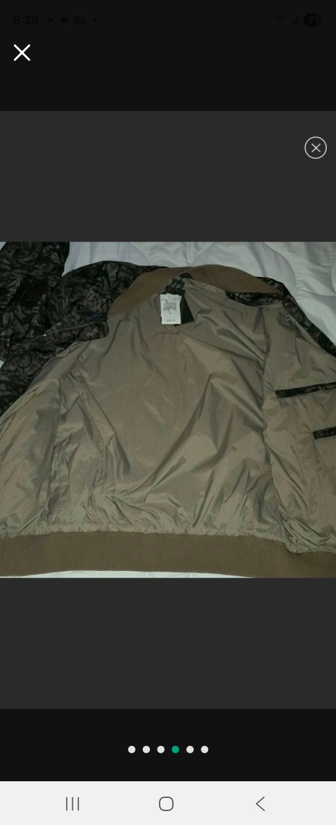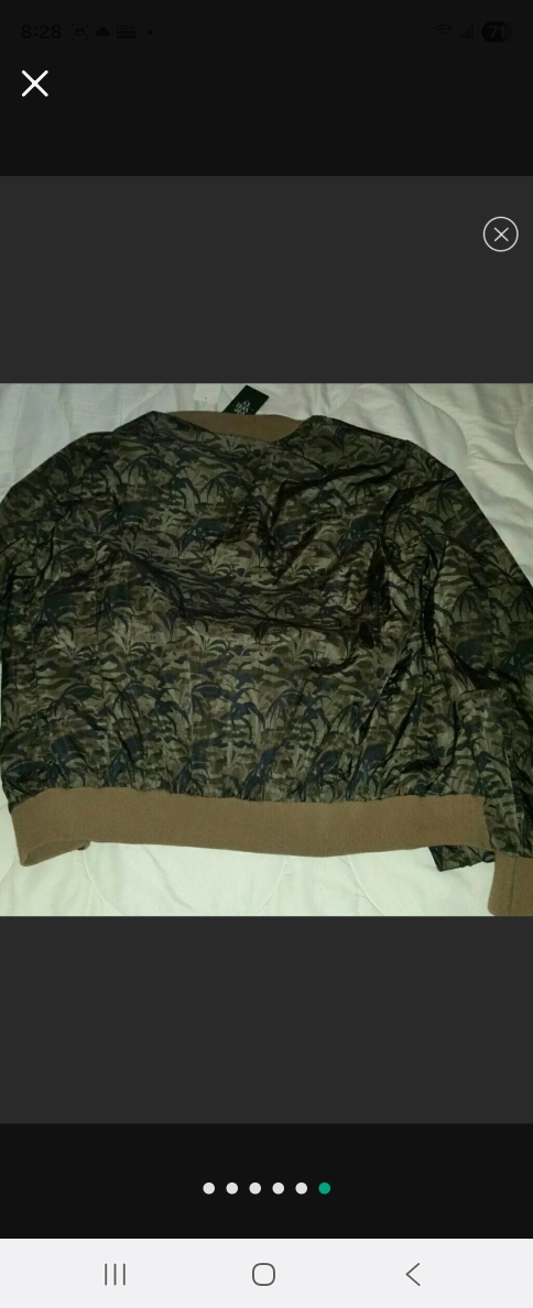 Bomber jacket with a nice pattern. Features a zip closure. Pockets are visible. A stylish item to add to your wardrobe, for those cool nights out.