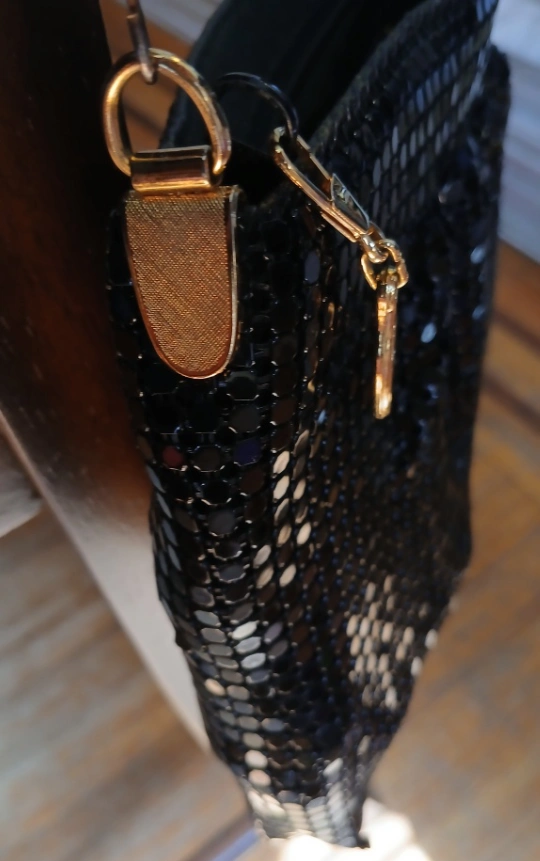 BLACK METAL SHOULDER/CLUTCH BAG WITH CHAIN