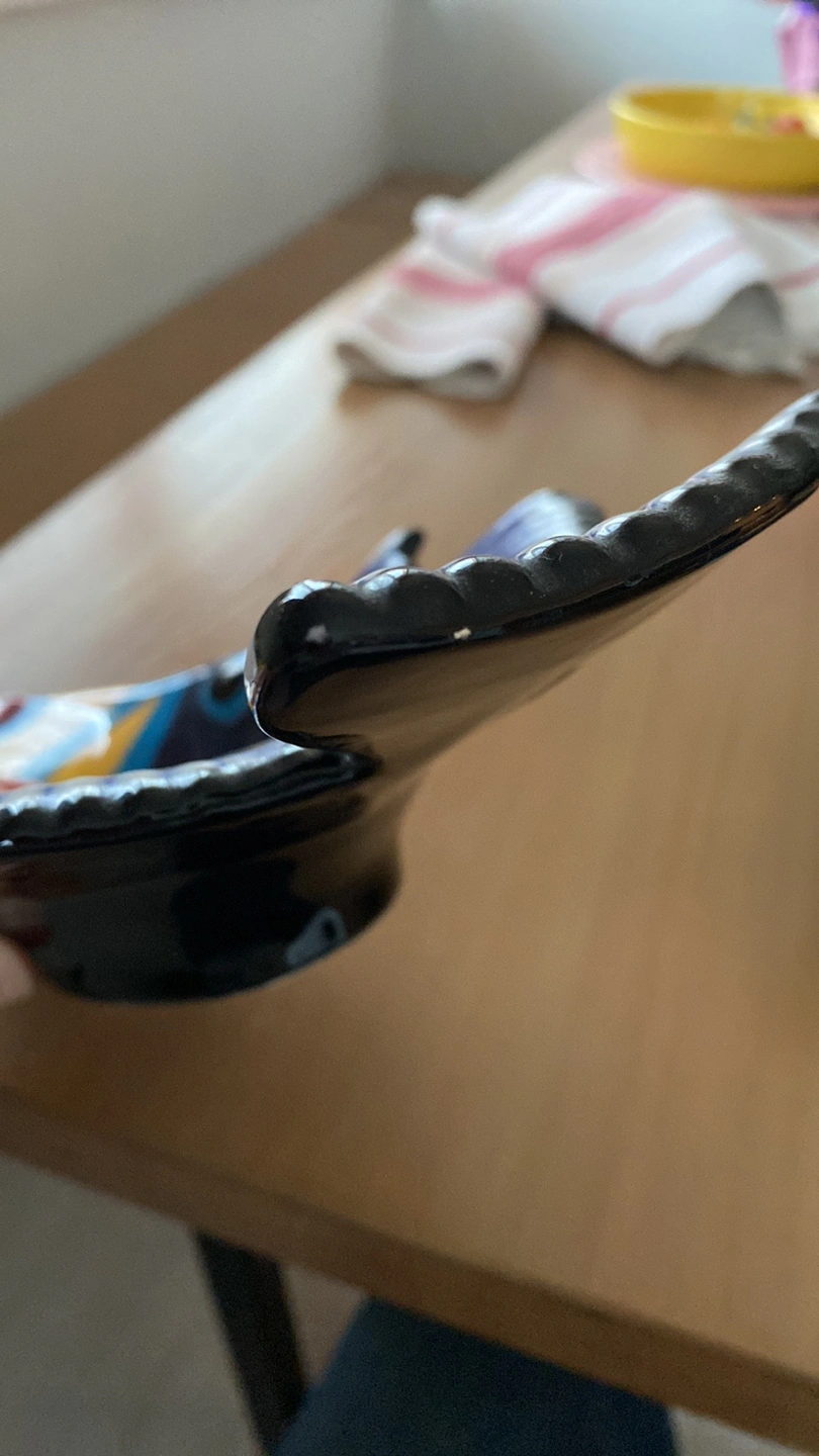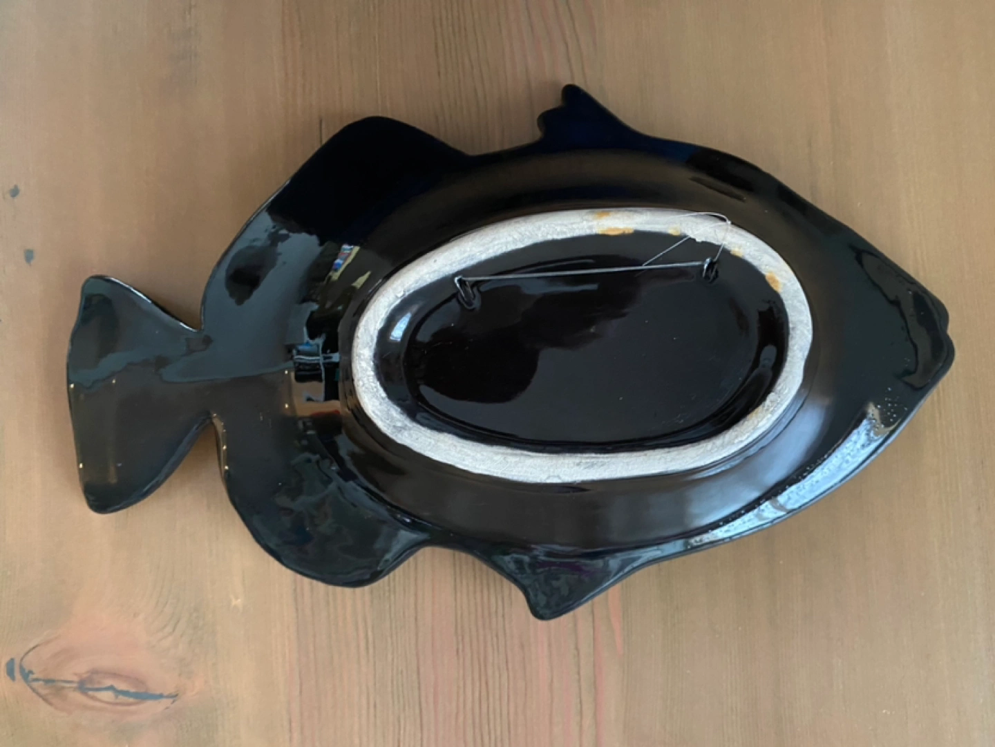 Handmade by Ben Diller in Maui, HI (1999). One of a kind. Bright tropical colours. Hanger on the back. Medium weight pottery. Tiny chip on edge.