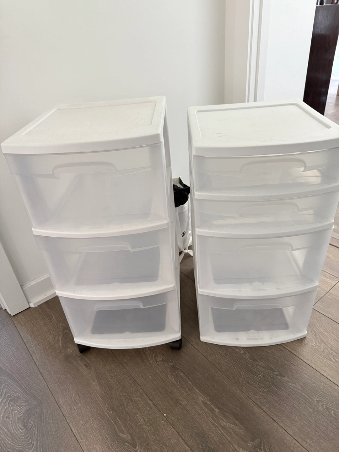 Buy & SellRolling Plastic Drawer Storage UnitsRolling Plastic Drawer Storage Units$12A pair of rolling plastic storage units, each featuring drawers. Can be stack together.ConditionLike newWHERE TO MEETDon mills and Helen Lu RoadView MapSELLERNuooHenry Farm27024 reviews0 chats·1 favorites·30 viewsSEND CHAT TO SELLERHi Nuoo! I’m interested in your listing.Hi Nuoo! I’m interested in your listing.Get the Karrot app to chatSign In to chat
