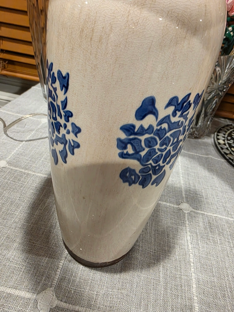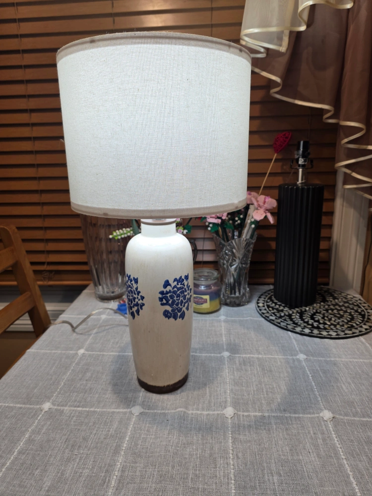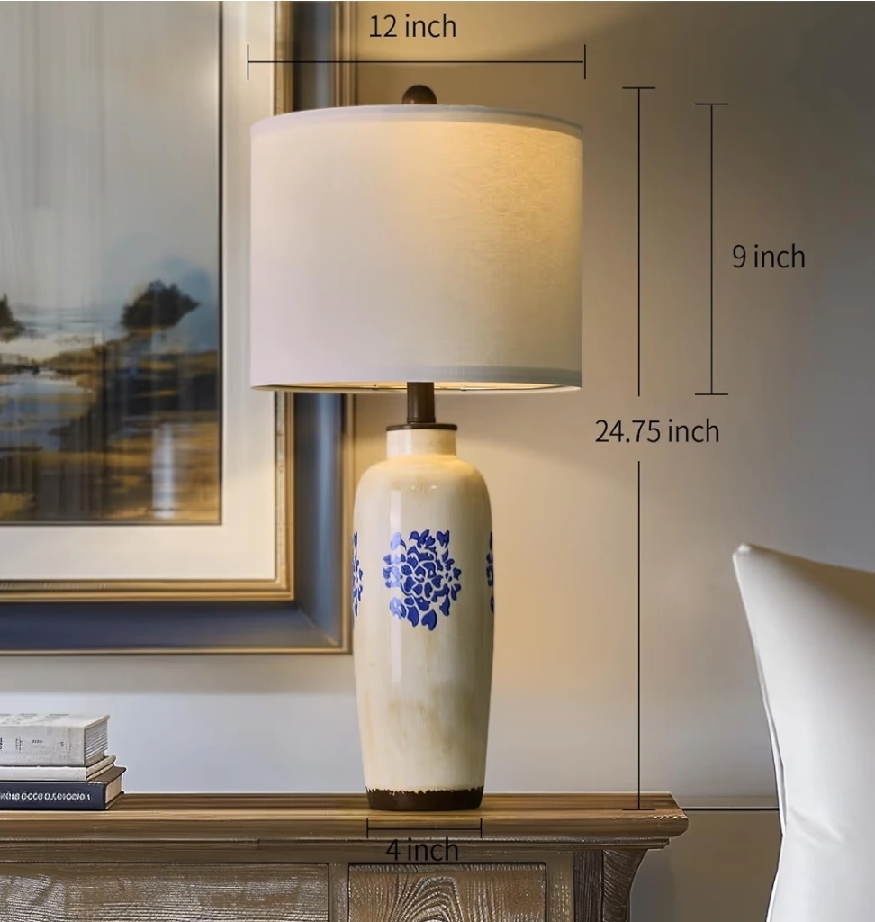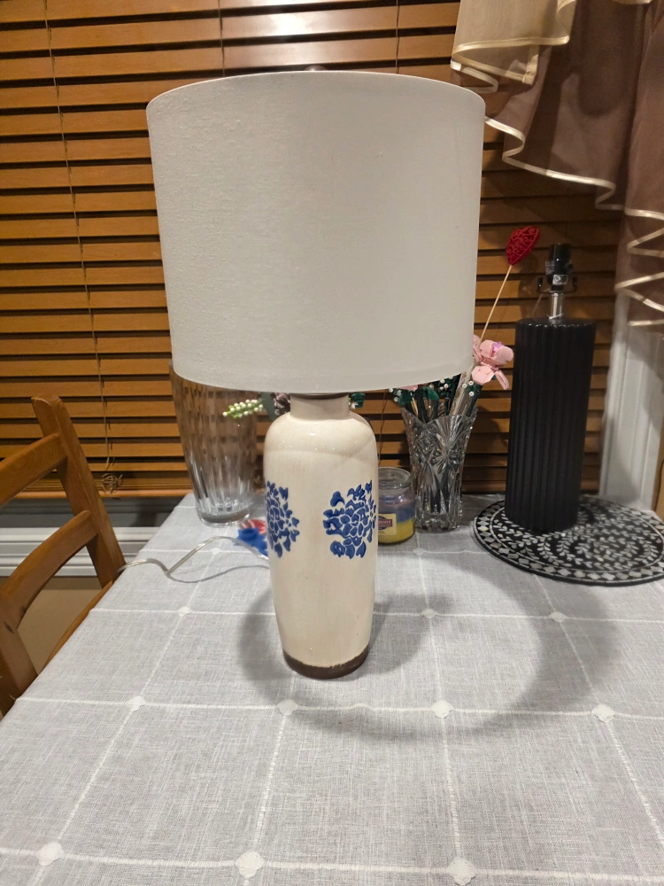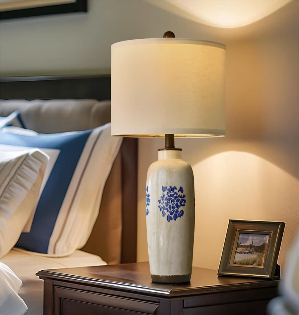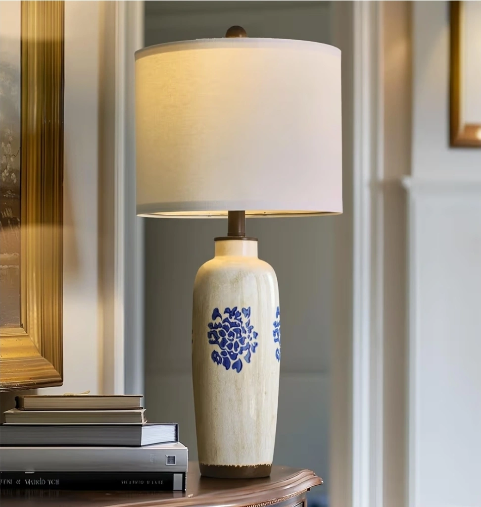 Ceramic Table Lamp with Blue Floral Design