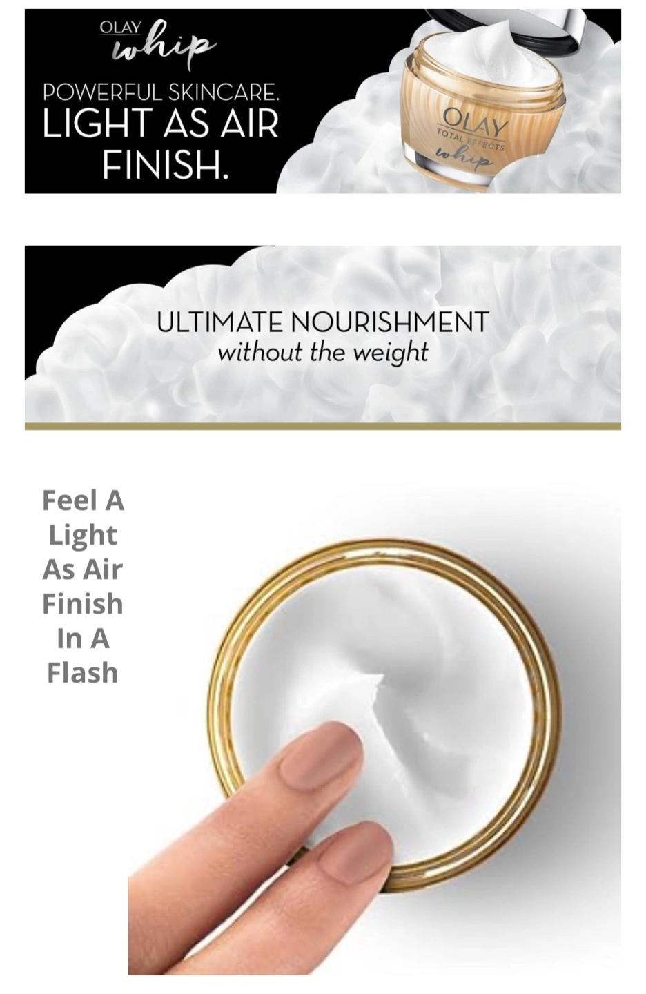 Olay Total Effects Whip moisturizer in its container, ready to use. Formulated with a light as air finish. I'm sure you will find that this will bring comfort and refreshment to your skin. ( No Box)