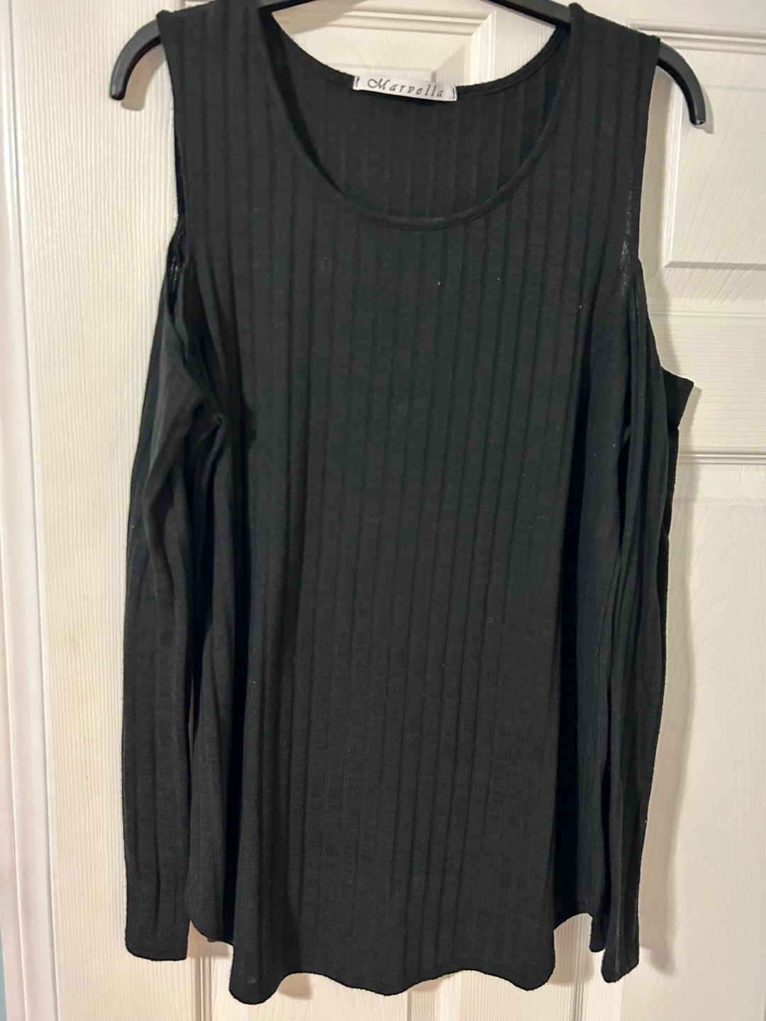 A lovely stretchy long-sleeved top. Features a ribbed design with stretch and open shoulder design.