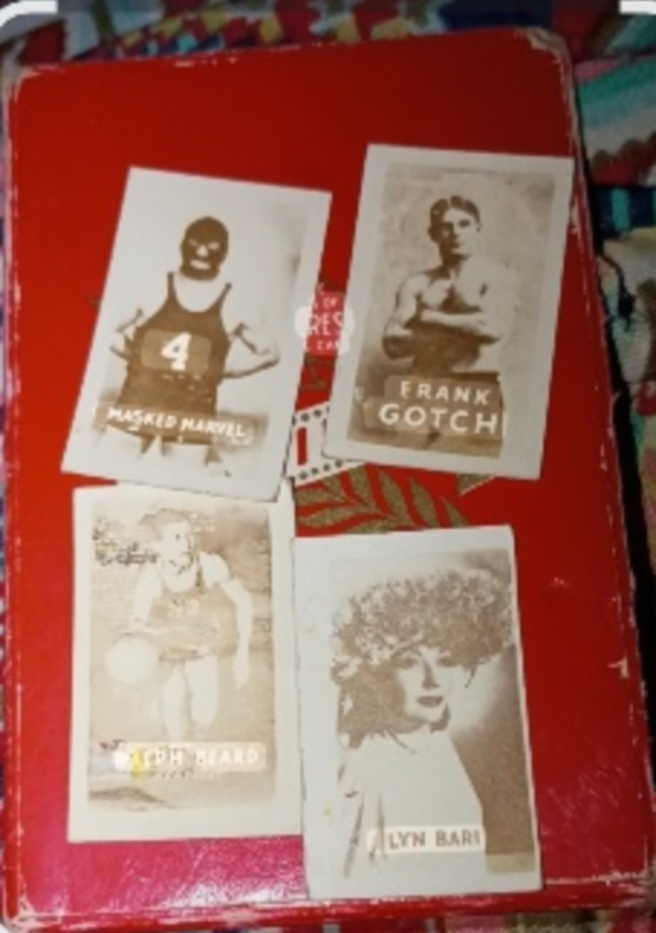 A collection of vintage trading cards, possibly in a box. Images feature different people and are mostly black and white. These cards are a great way to reminisce about the past.
