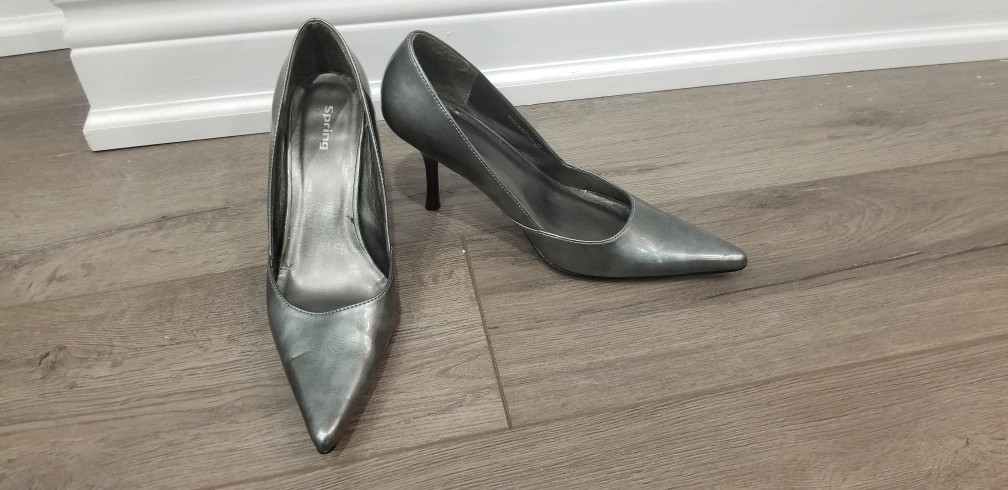EUC - Spring Vegan Leather Charcoal Grey Pumps Size 6.5 USA