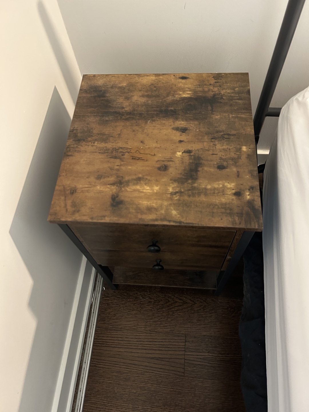 Set of 2 Nightstands with two drawers. Featuring a lower shelf. Metal frame. Wood-look finish. A perfect spot to keep a good book close at hand, to encourage a restful night's sleep.