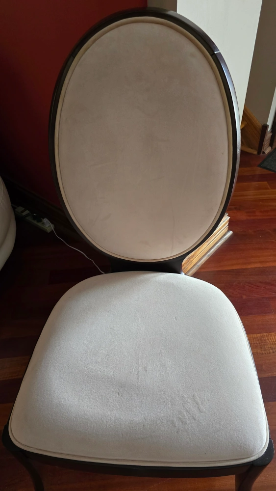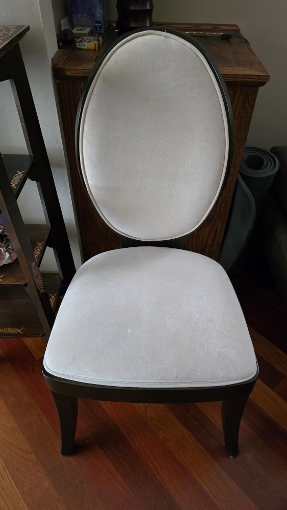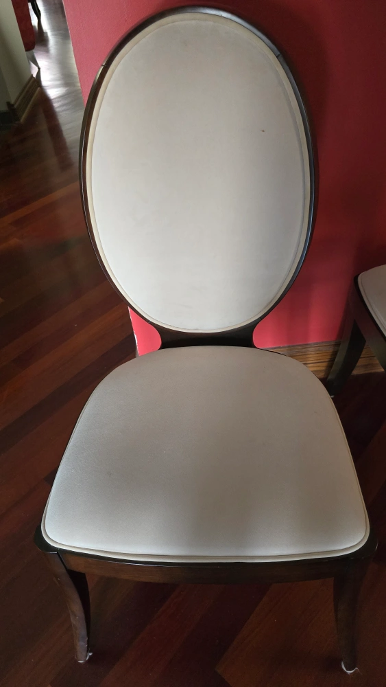 Bought from Z-Gallerie, elegant and good-looking chairs and dinner table. Lightly used, only a few times a year. There are occasional, not extensive chipping on the chairs/table, and some stains on the chair fabric. The legs of the table were removed, all in great condition including 3 bolts each, total 12 bolts, only 5 min installation.