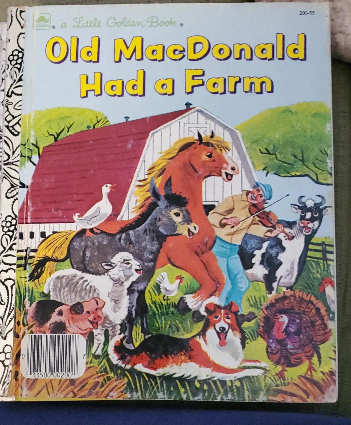 This is a Little Golden Book titled Old MacDonald Had a Farm. It features classic farm animals like cows, sheep, pigs, horses, and more. It's a great book for young children learning about farm life and animals!