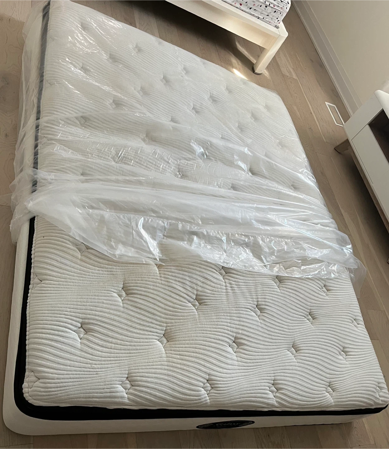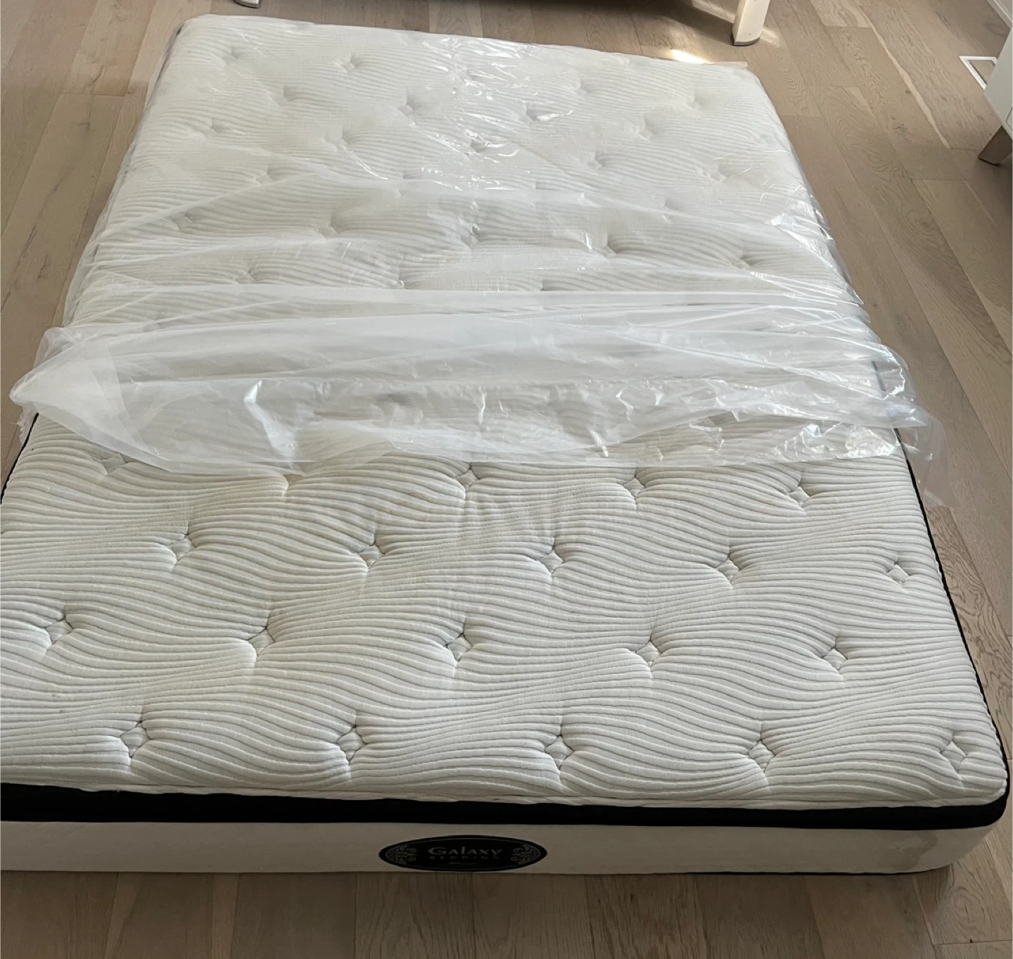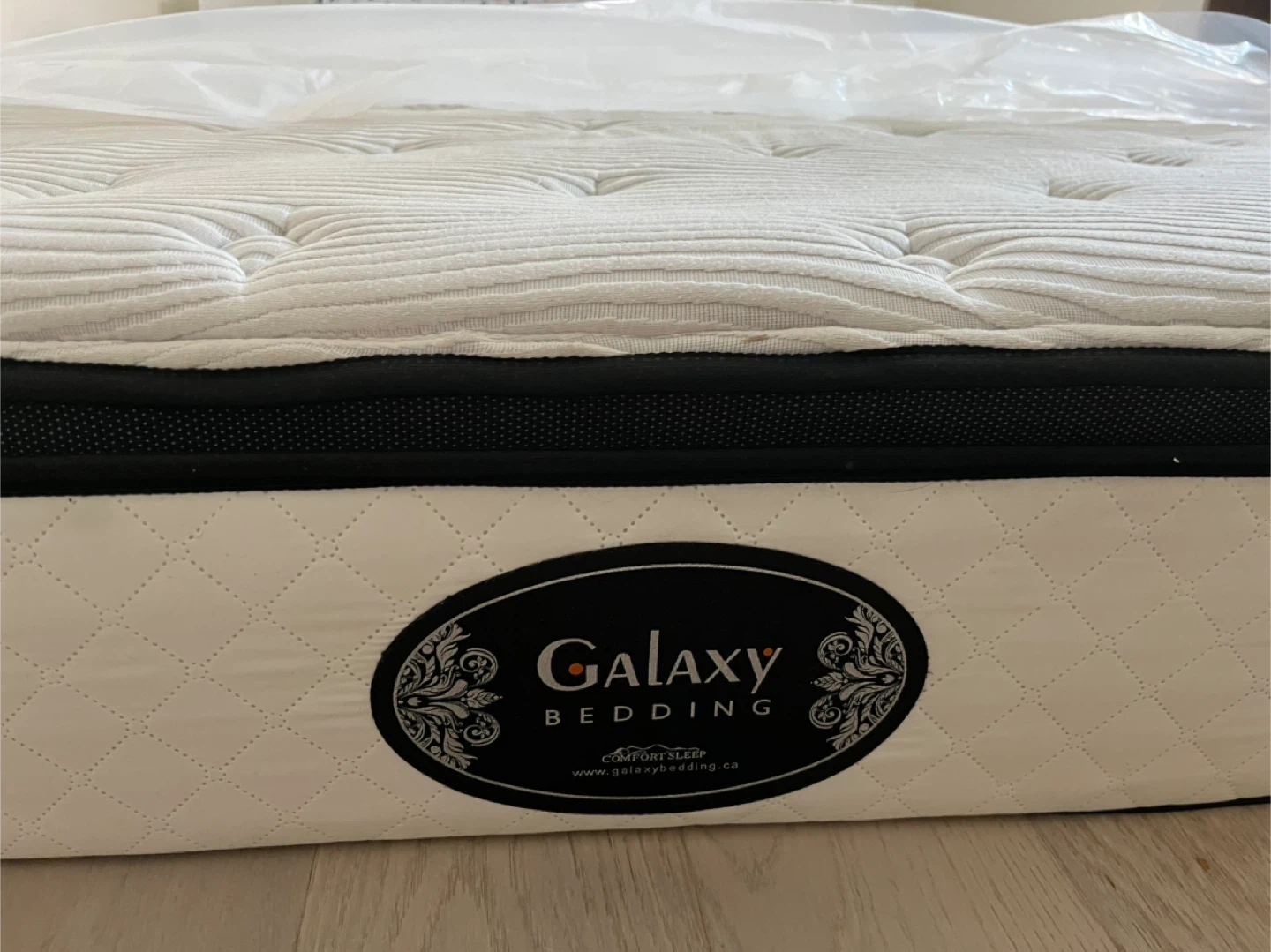 Selling a brand new Galaxy mattress! It's still in its original packaging, ready for a good night's sleep. The mattress has a comfortable and supportive design, perfect for any bedroom