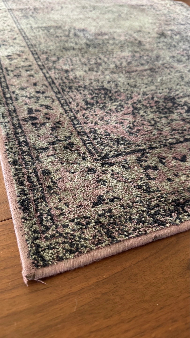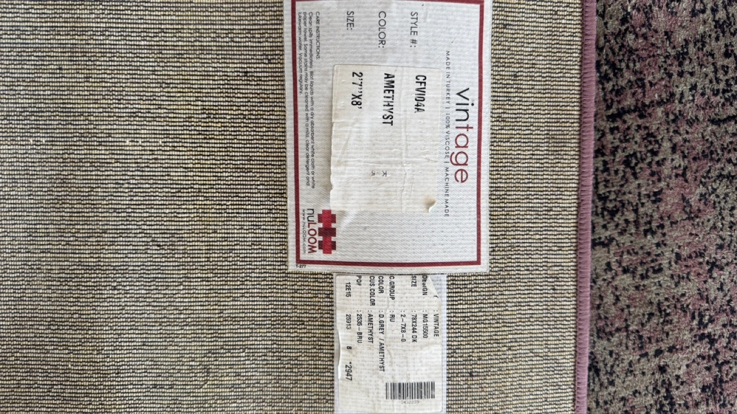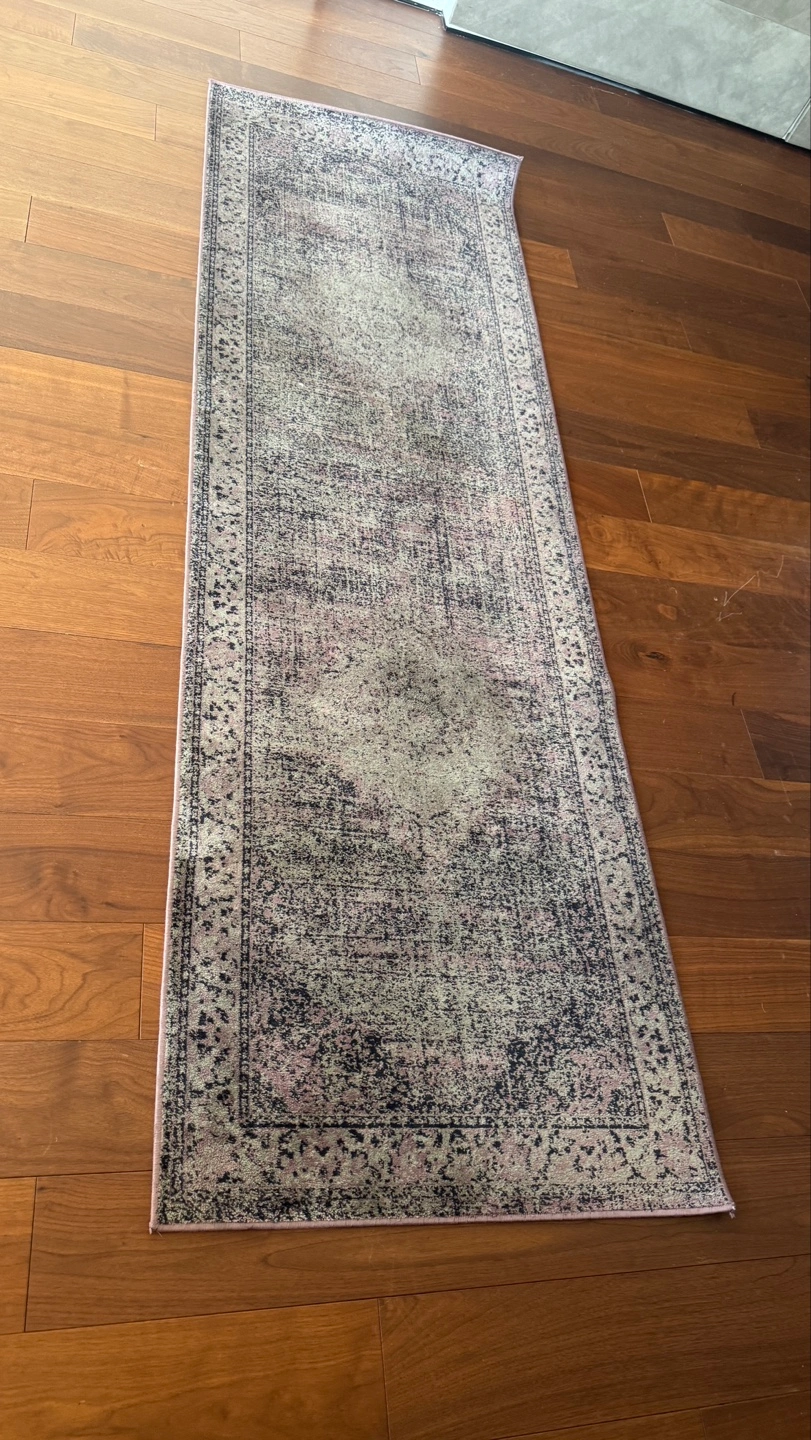 Beautiful runner rug. Features a vintage design. Amethyst color. Perfect for entryway or hallway.
