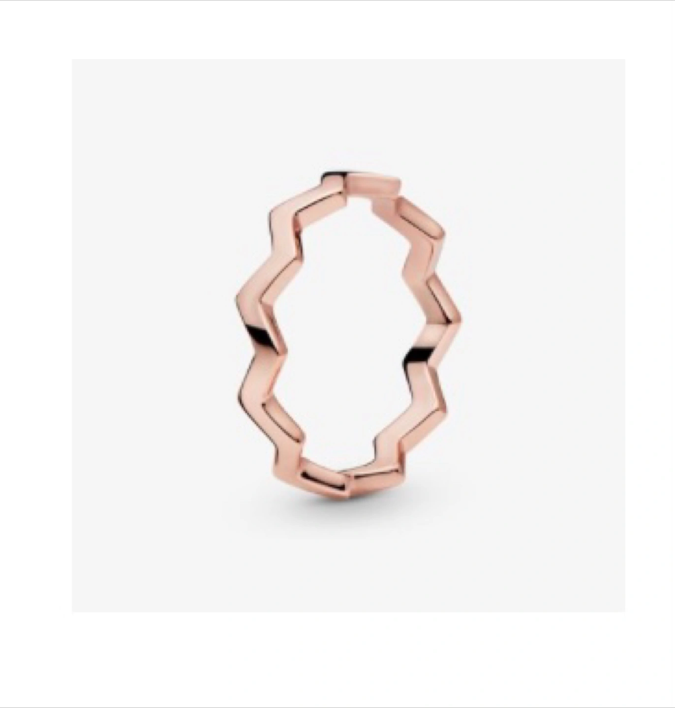 A stunning ring, a zigzag design. The ring appears to be made of a polished rose-gold metal.