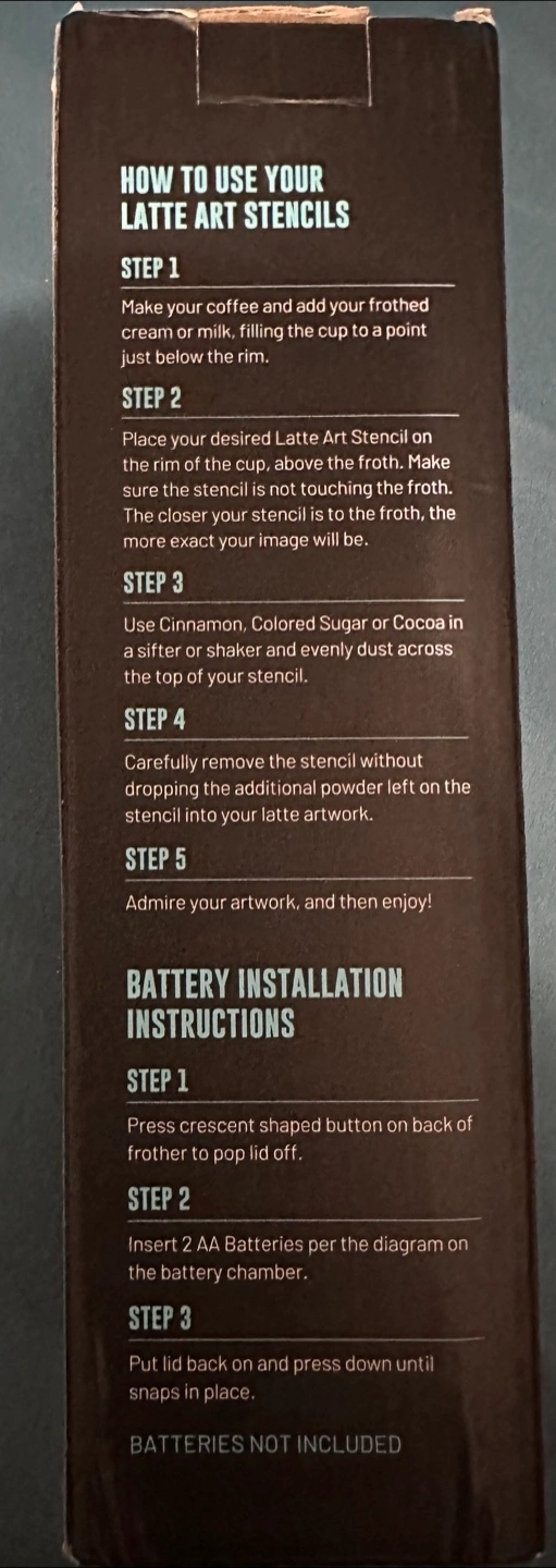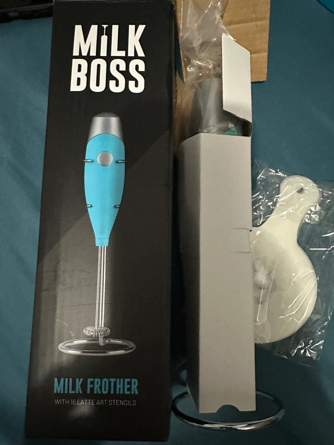 A milk frother, with latte art stencils. Perfect for lattes, cappuccinos, and more. You can make your morning coffee routine a little more enjoyable with this item.