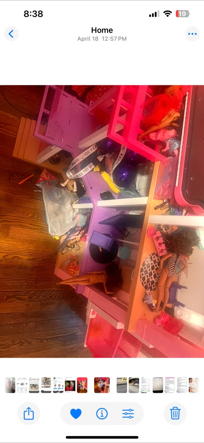 Dollhouse with several levels. Pink and white in color. Accessories, including dolls, furniture, and more. Providing hours of entertainment for imaginative play is an excellent way to unwind and relieve stress.