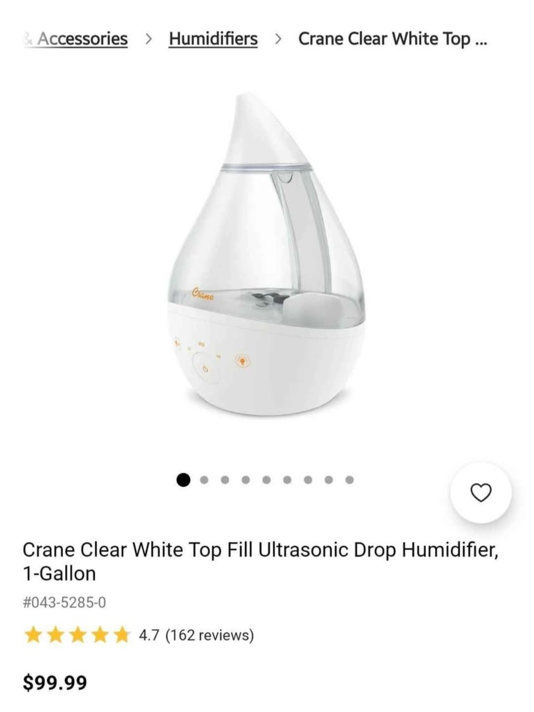 Crane 4-in-1 Filter-Free Top Fill Ultrasonic Humidifier