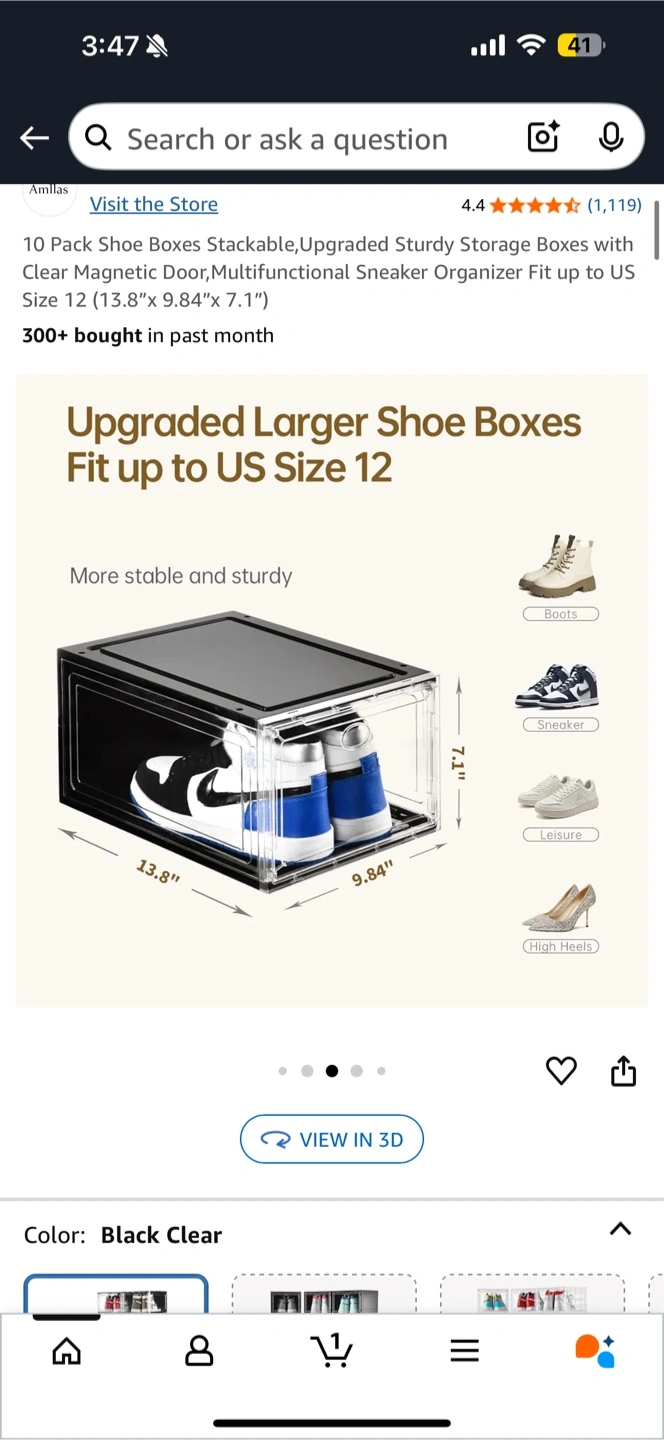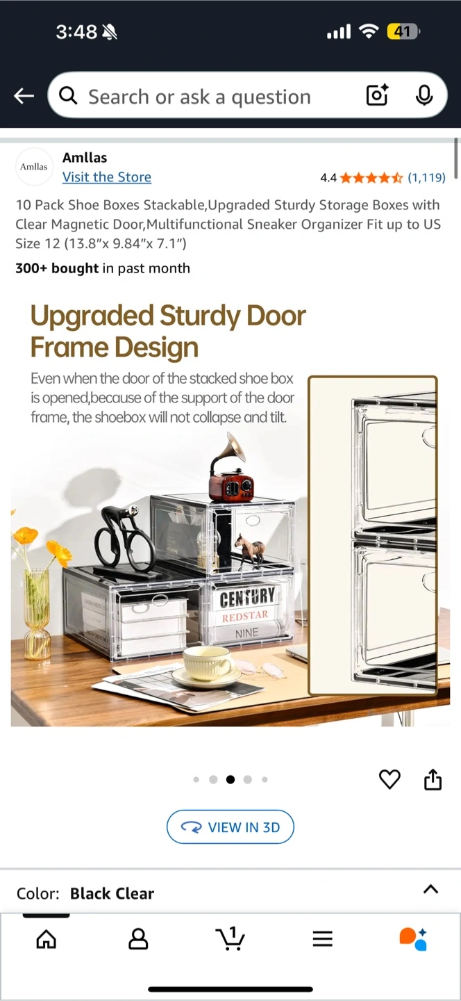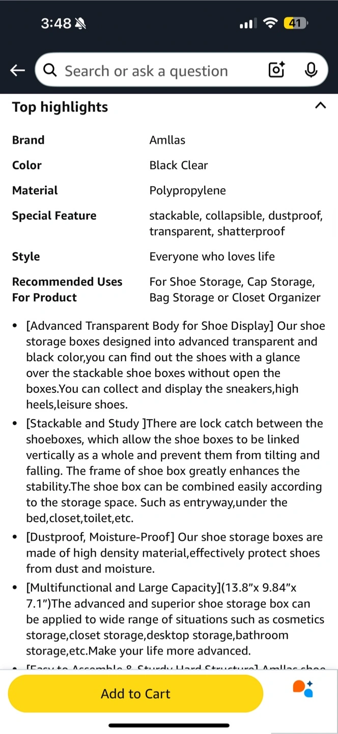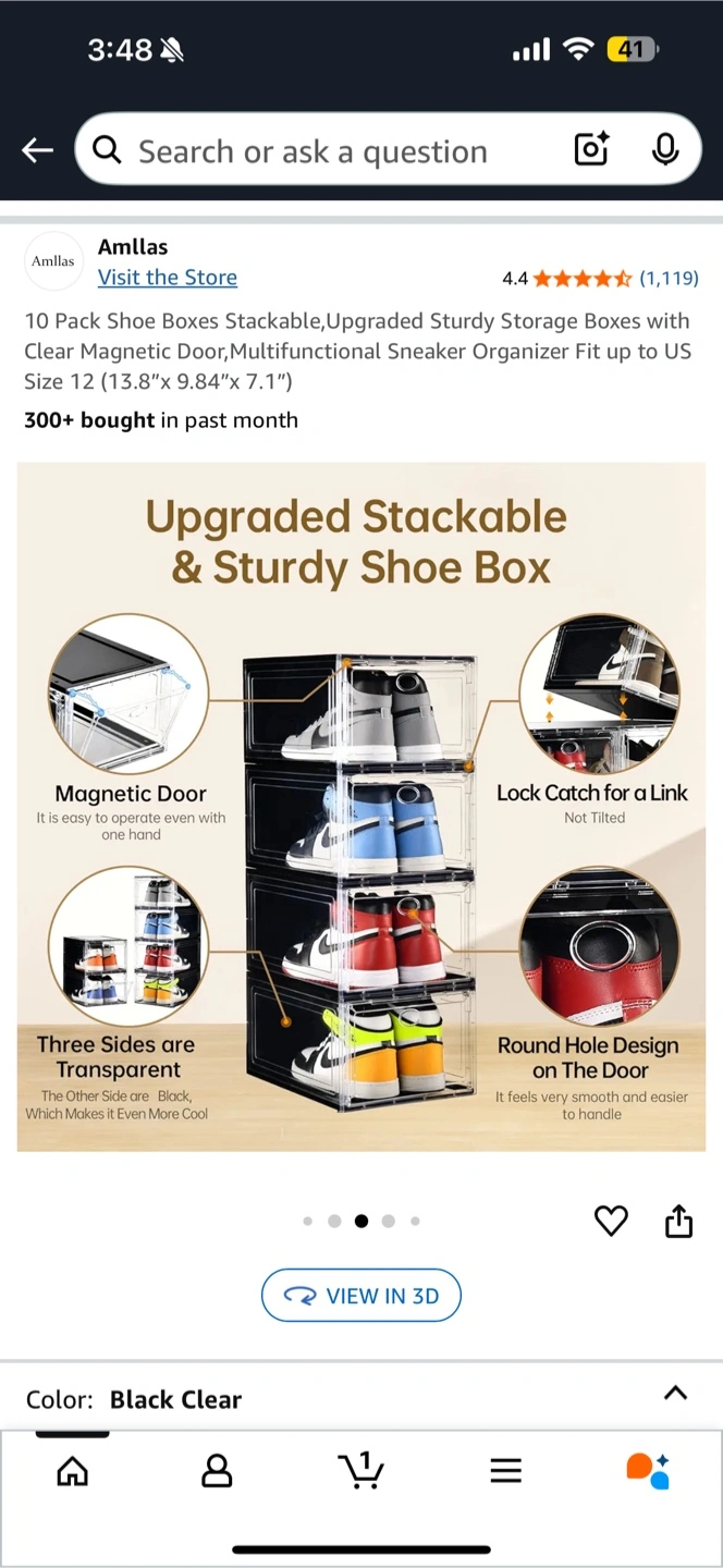 Clear plastic shoe storage boxes. Stackable design. Clear door for easy viewing of contents. Great for storing shoes while keeping them organized.