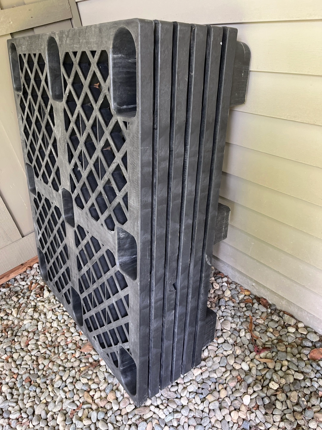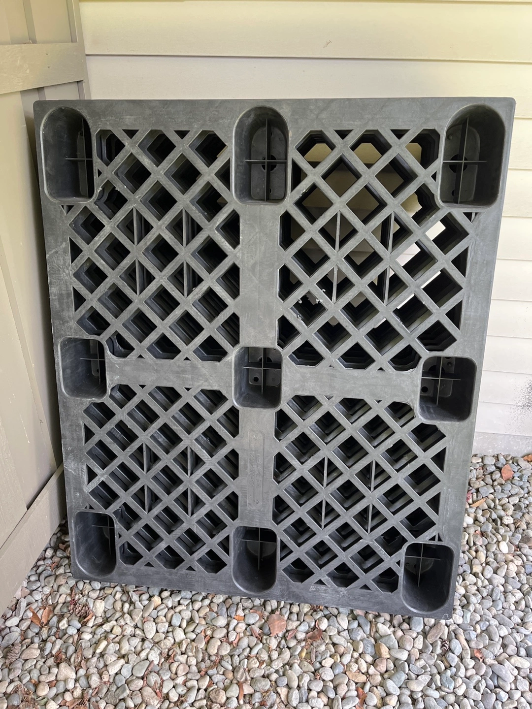 Total 6 of them, one dollar each! Offering a set of plastic pallets. They are a dark colour. Designed with a grid-like pattern. A great item to help organize and store things for your convenience.