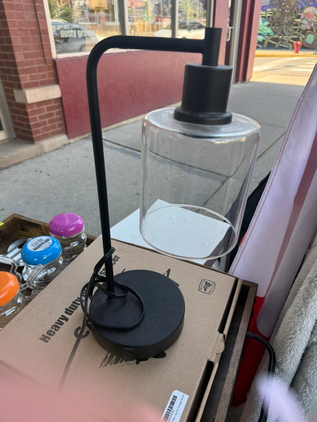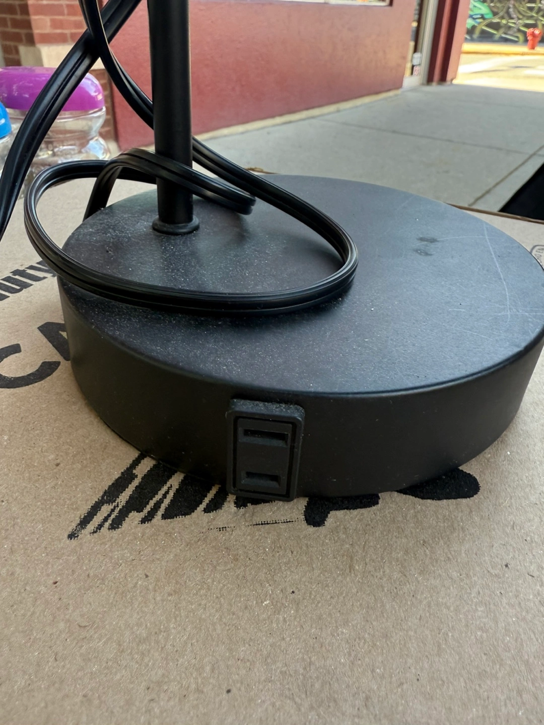 Beautiful, perfect condition table-lamp with USB Ports and Plug on the side. Tap-on-tap-off on the base, no switch needed!