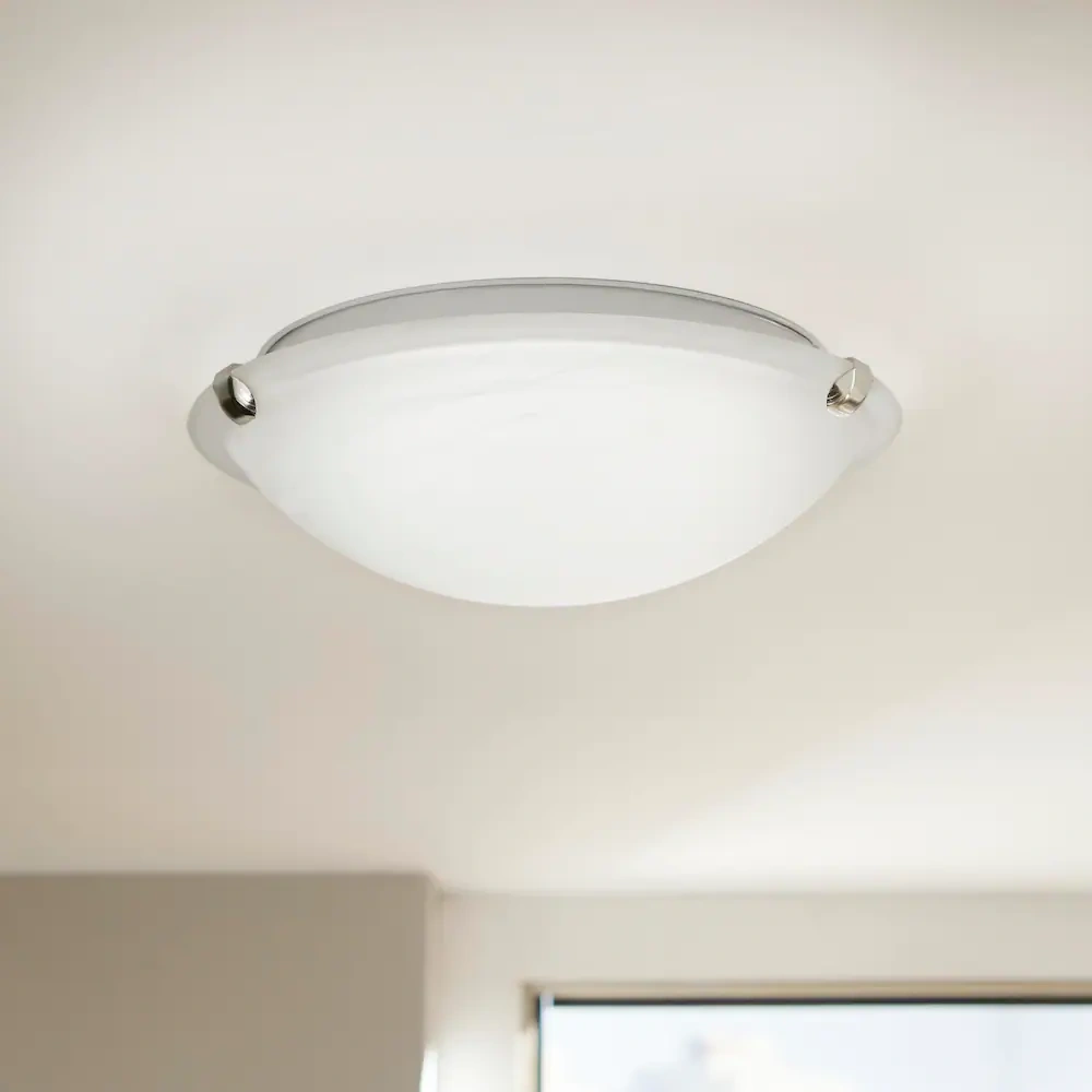 Add a touch of contemporary style to your interior. This low profile simply styled ceiling fixture with pewter clips is versatile enough to suit any room or decor. Transform your hallways, brighten up your bedrooms or update your den.