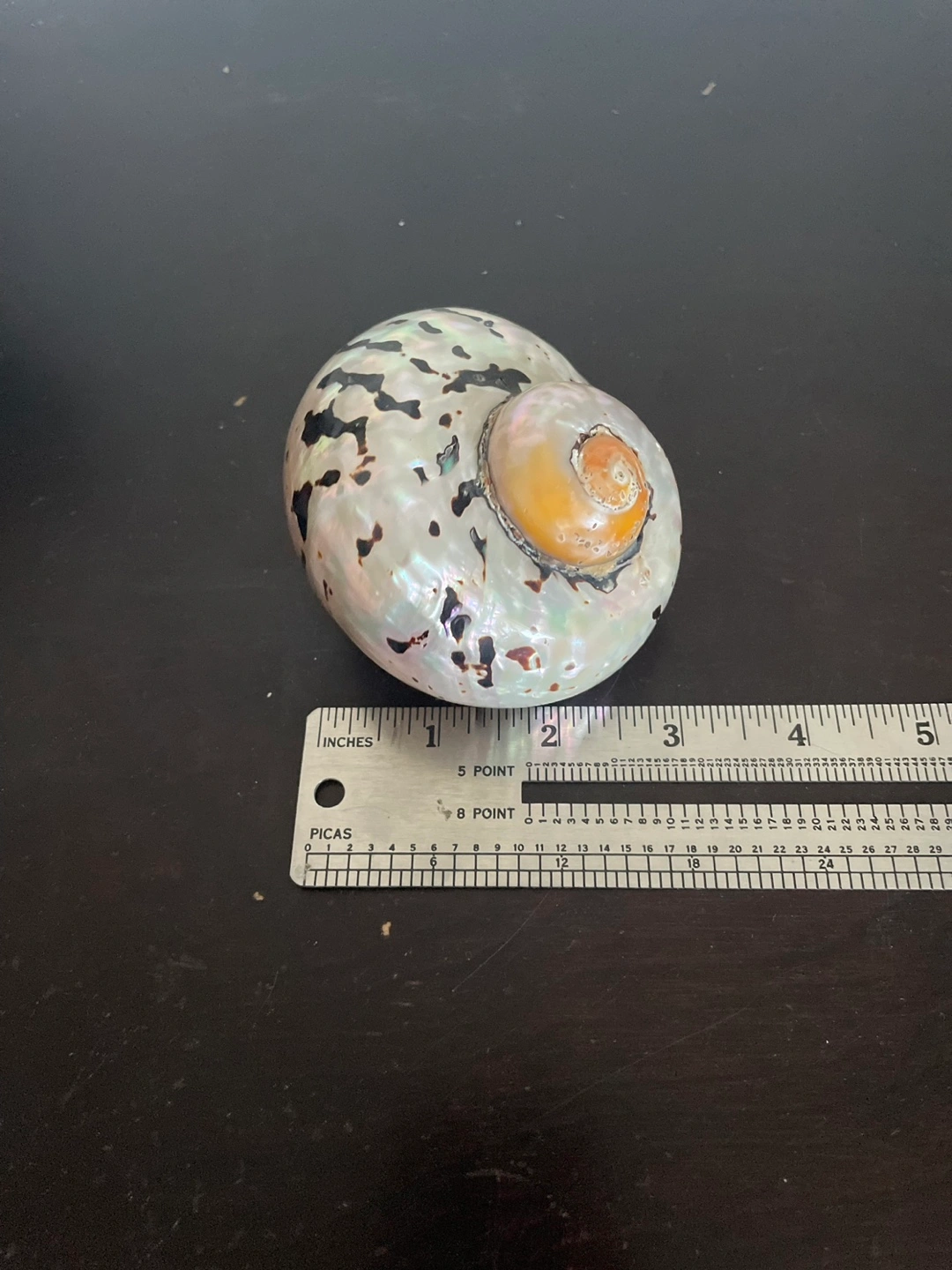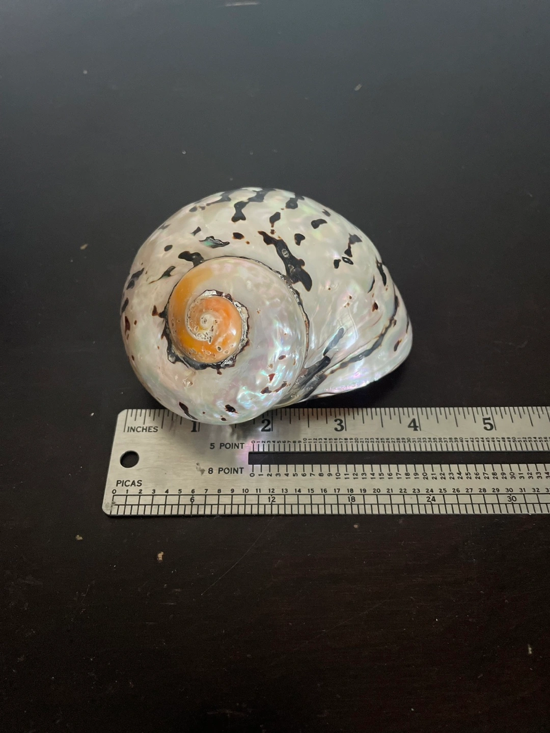 836Lovely iridescent natural seashell. Speckled pattern. See photos for size. Door pickup only.