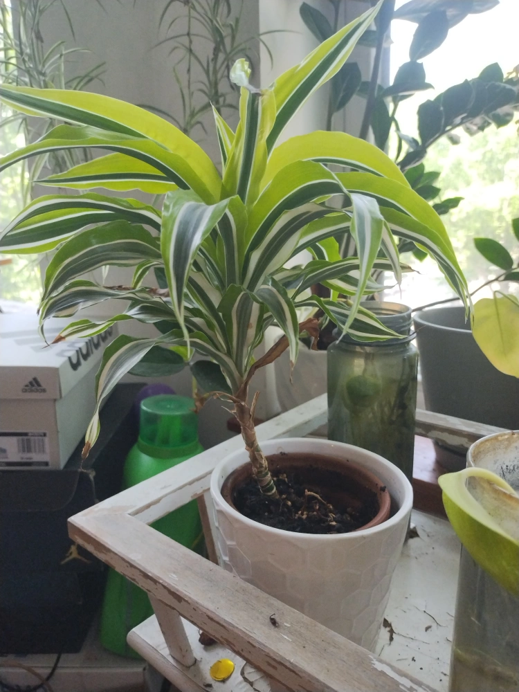 Offering a beautiful bundle of house plants. One has long, vibrant green leaves. Another has lush, rounded leaves, and the final one has vibrant green and white leaves. These plants are great for adding a touch of nature to any room, creating a calming ambiance.