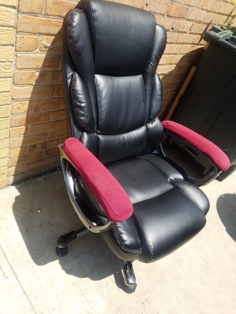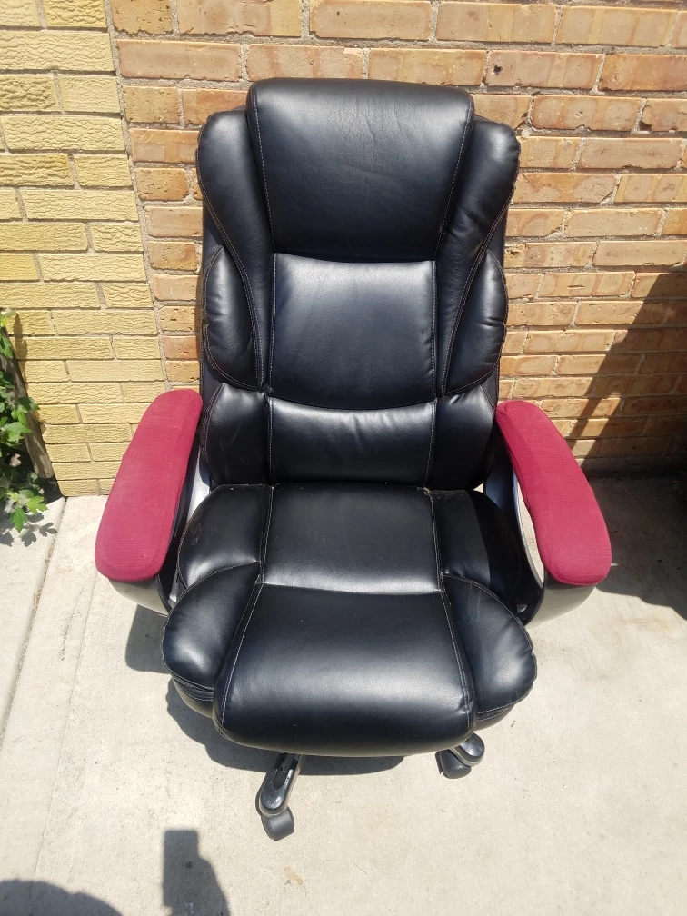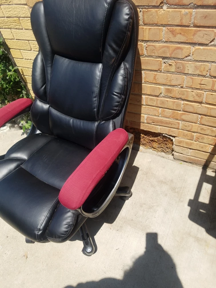 Executive Style Black Office Chair with Red Armrests