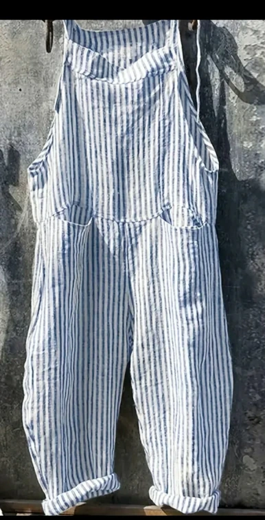 NEW never worn overalls feature a blue and white stripe pattern. The straps tie at the shoulder. Cuffed hems. These overalls can create a comforting, relaxed look. Gorgeous light fabric for this cool feel for the hot weather. Pinstripe fabric is traditionally is a convenient vintage look and terrific way to bring in the summer π
