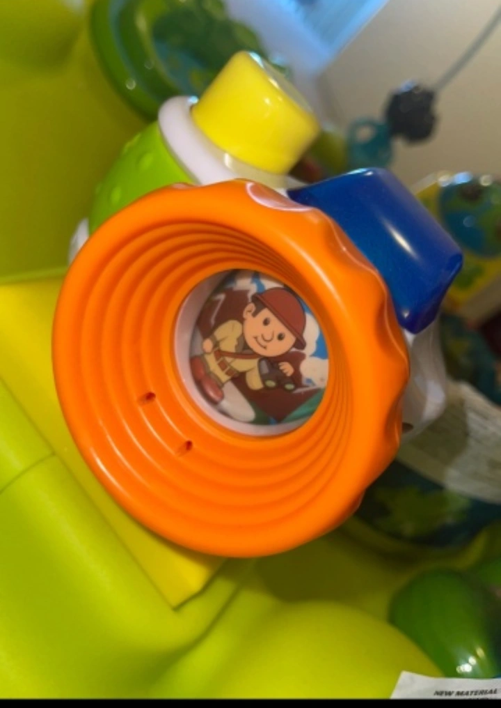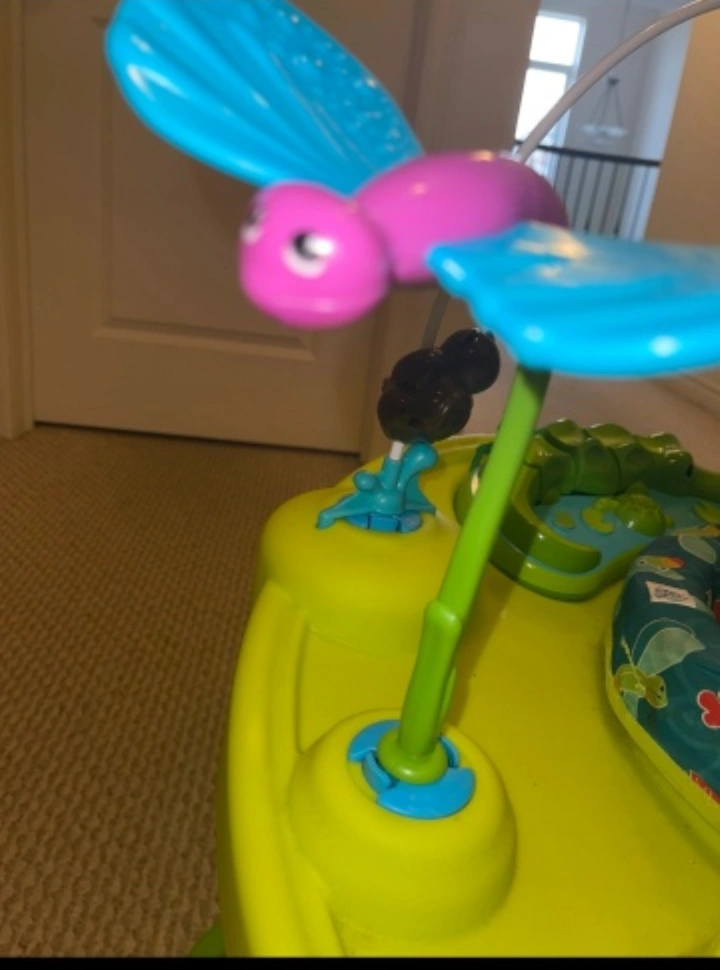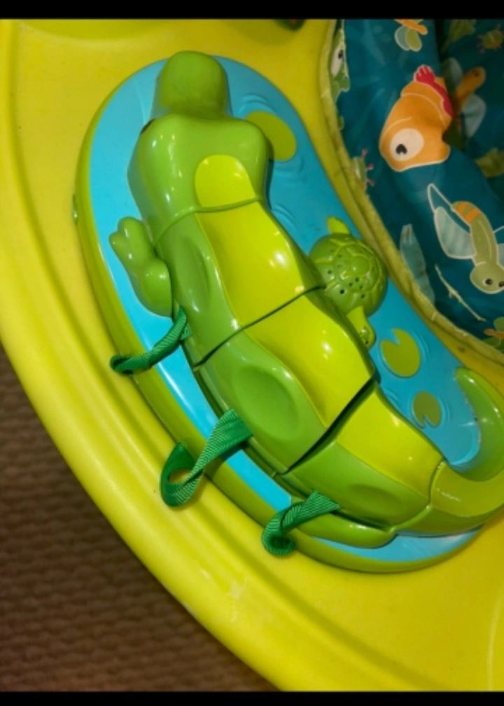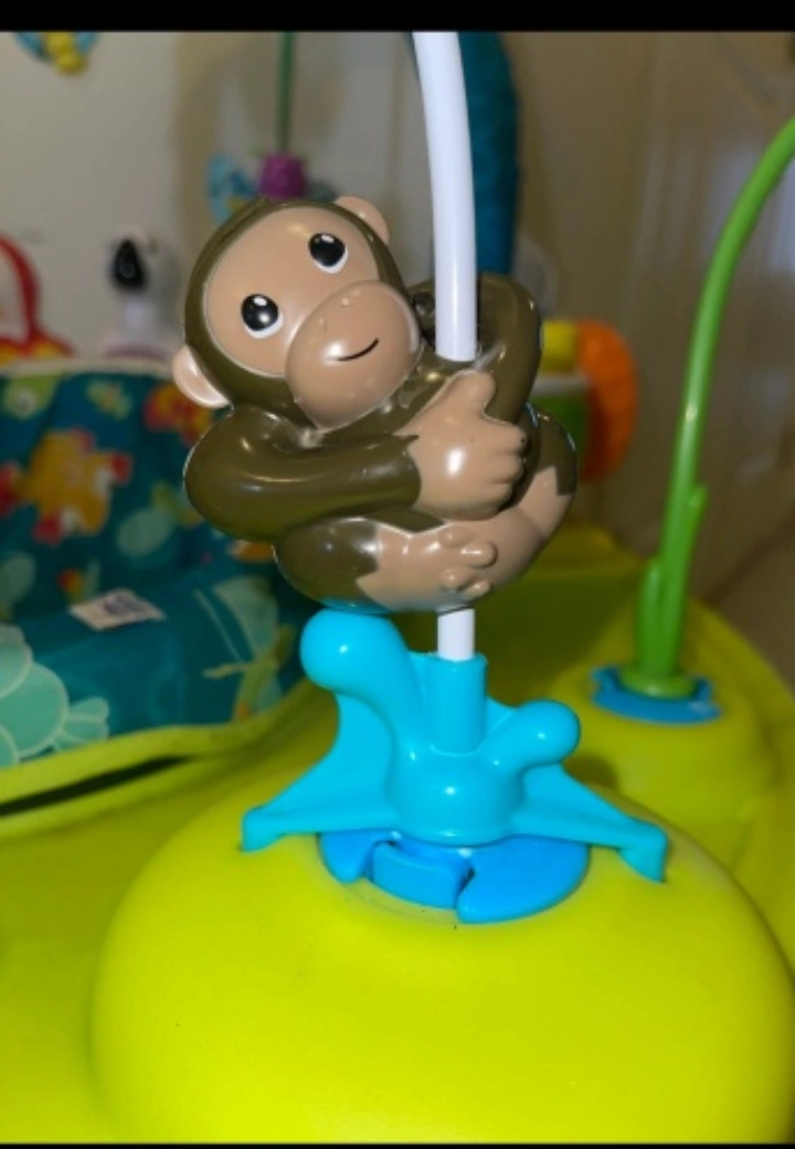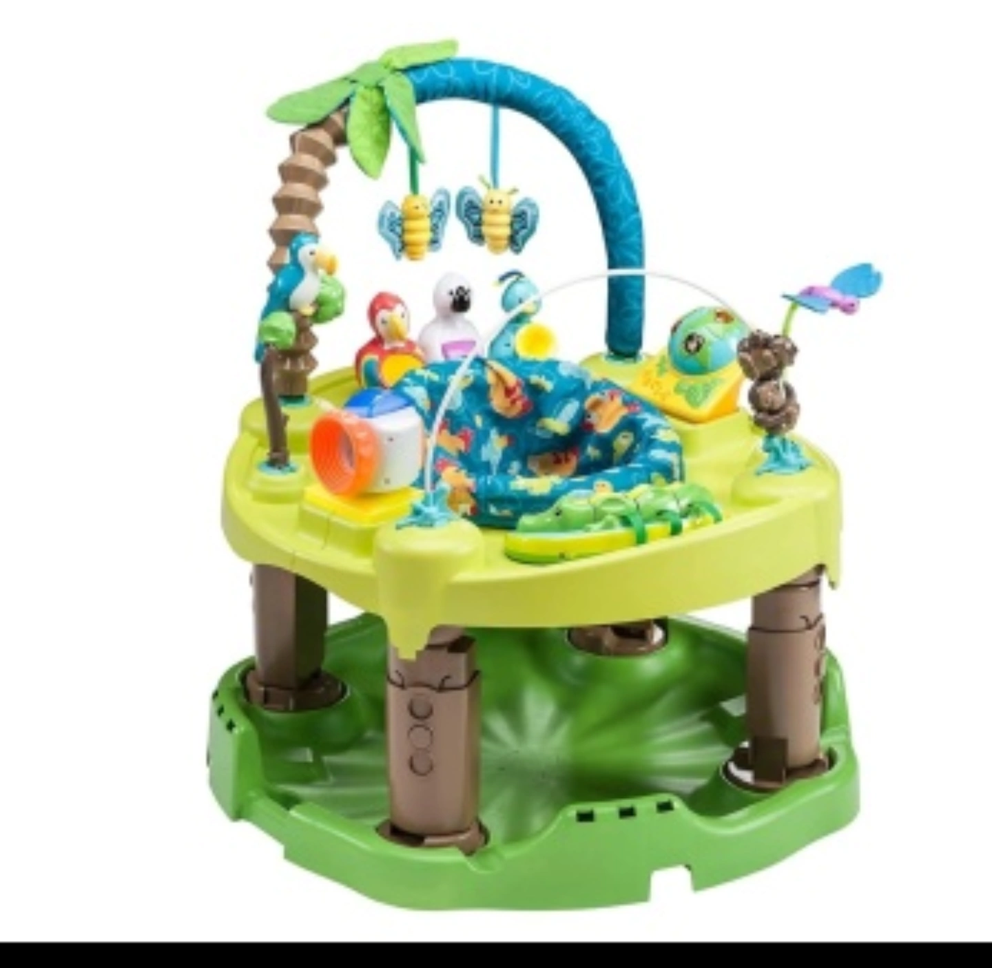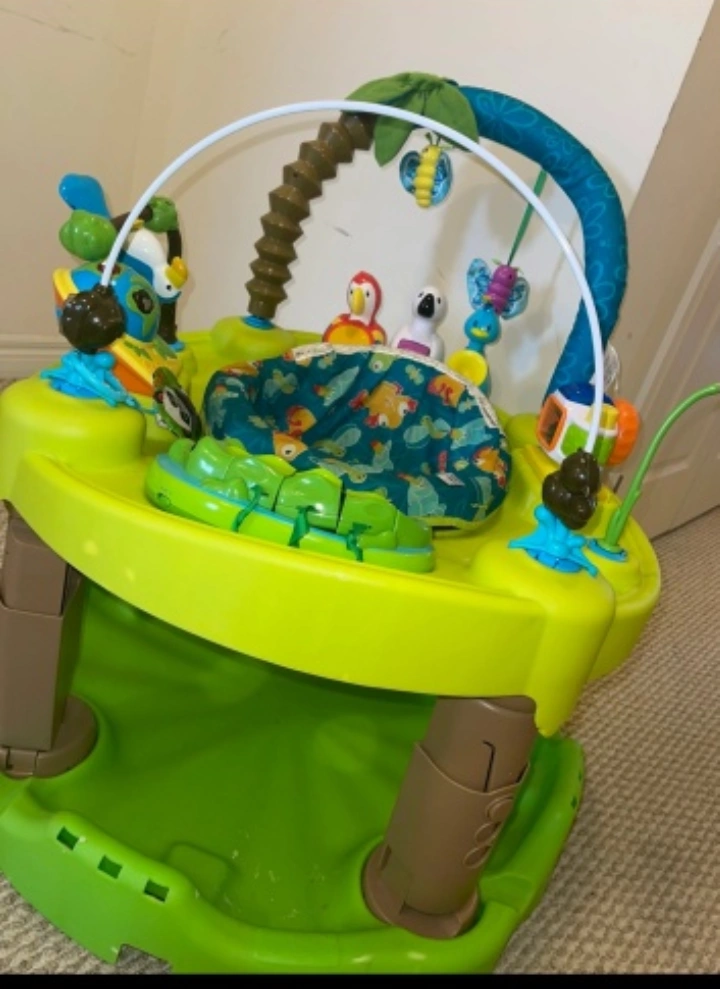 Brightly coloured activity centre. Features jungle-themed toys. Includes a spinning toy and a seat. A great item to keep your little one entertained and calm.