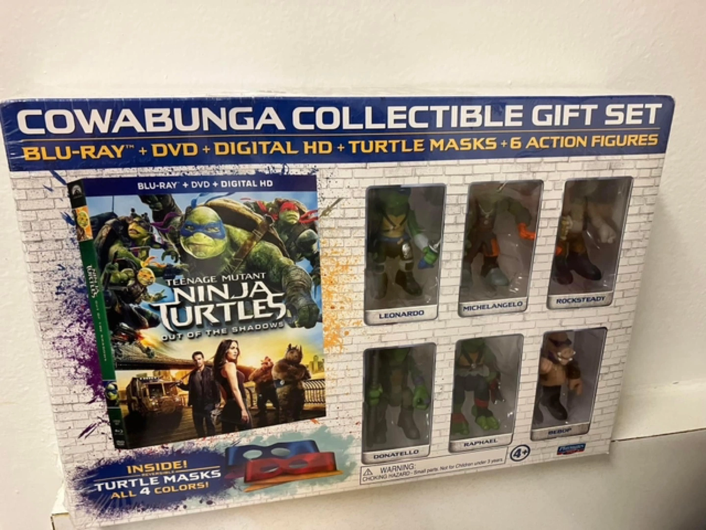 TMNT Out of the Shadows DVD collectors set with 6 action figures. Brand new in box $15 preferred meetup at Dundas Square or College Park