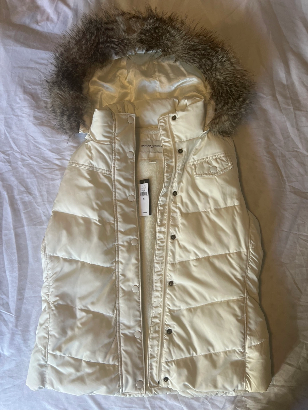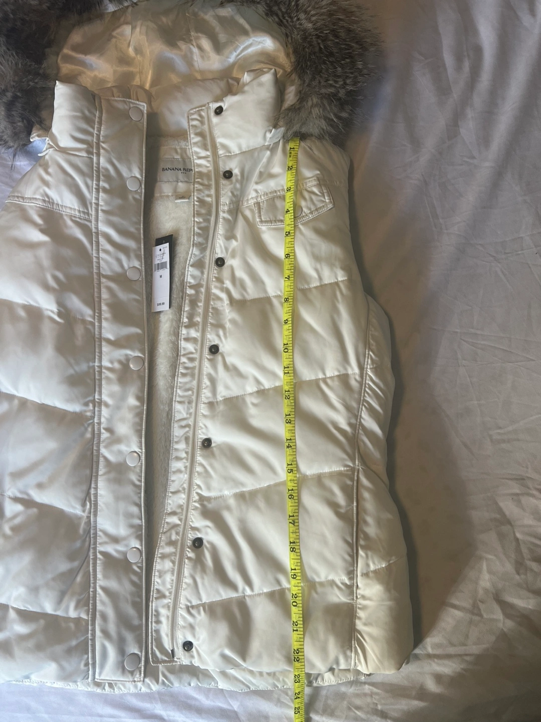BANANA REPUBLIC HOODED PUFFER VEST WHITE New With Tags White Women M Flat Measurements: Length: 22.5" Pit to Bottom: 15" Pit to Pit: 20" Arm Length: N/A Cash Rossland & Salem Area Pickup (Ajisen Ramen 334 Rossland Rd E) Smoke Free Home 🏑 Sanitized and Washed Thoroughly 🧺 Bundle to Save Up to 20% πŸ› Offers and Questions are Welcome 😁