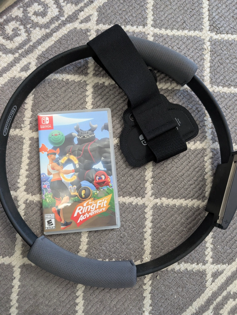 Ring Fit Adventure game and accessories.