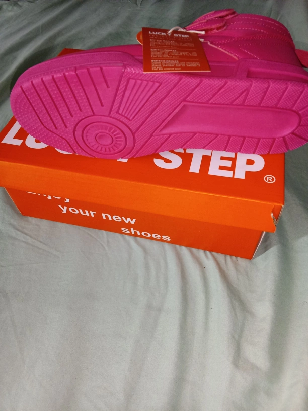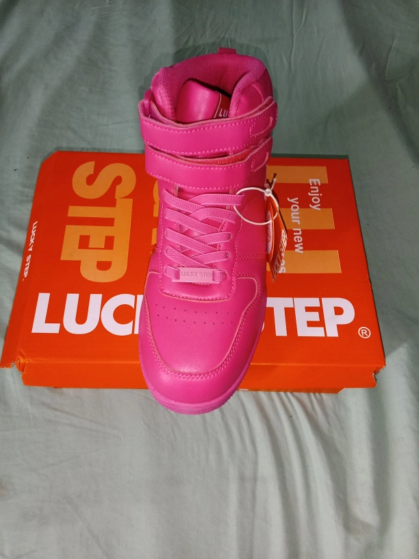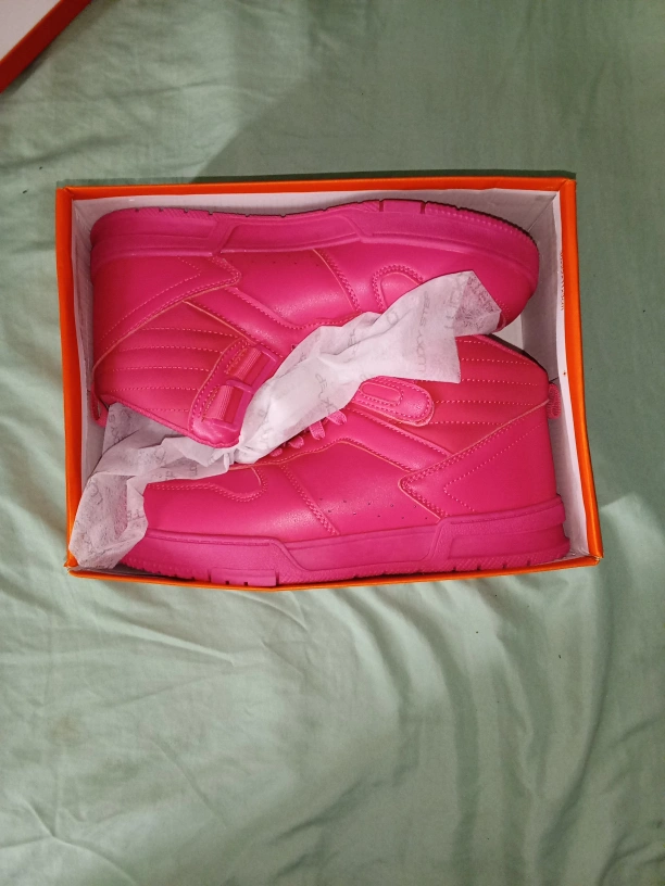 Bright pink high top sneakers. The sneakers come in their original box. Consider these for a leisurely stroll through the park.