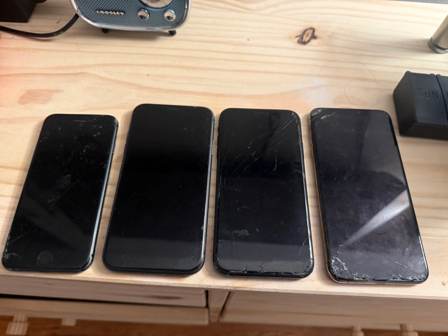 Here are four phones. All have cracked screens. Perfect for parts or repairs. Consider these phones as a starting point for a tech project. Looking for $50 each phone or $175 for all.