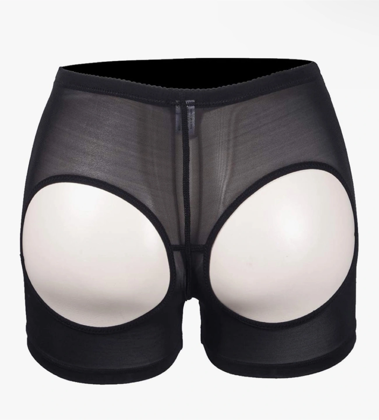 Shapewear shorts. Black color. Mesh details, including padding. Designed to lift the rear. Consider wearing these if you want a little confidence boost.