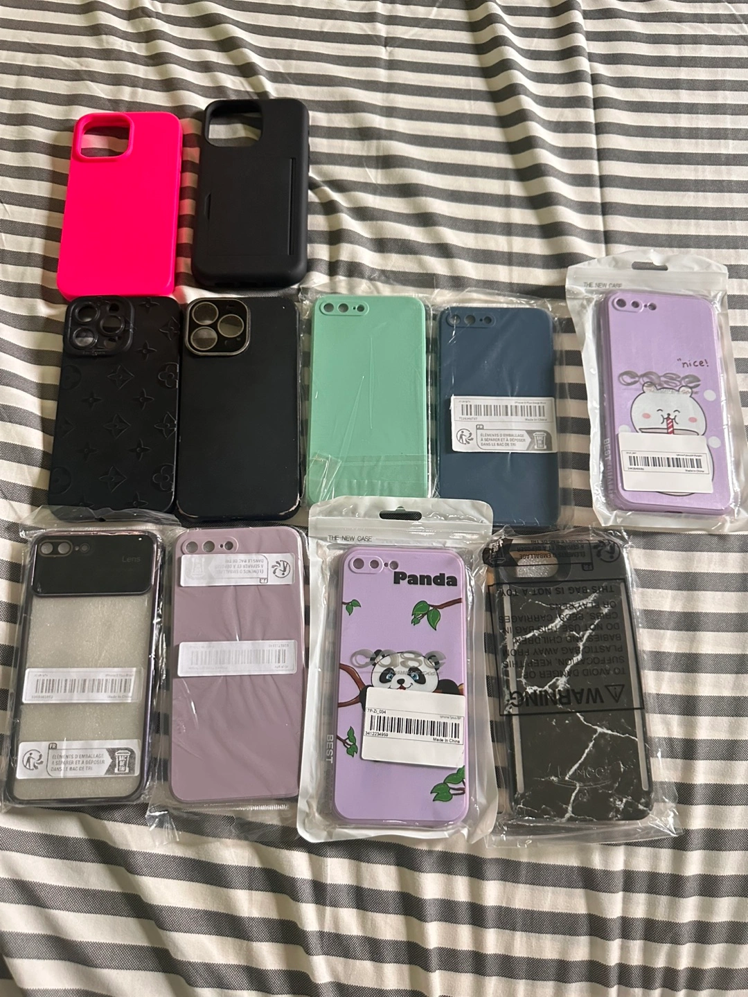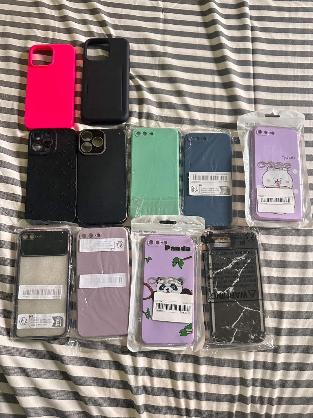 Offering a variety of phone cases. Featuring various designs, patterns, and colors. You can protect your phone from any damage with these cases. 8 dollars for each one oh for all 60