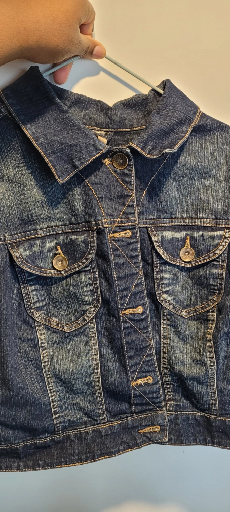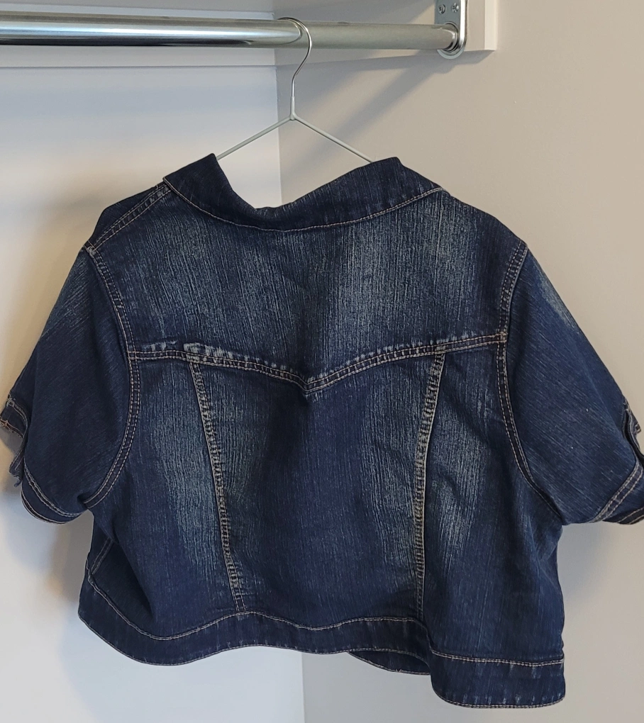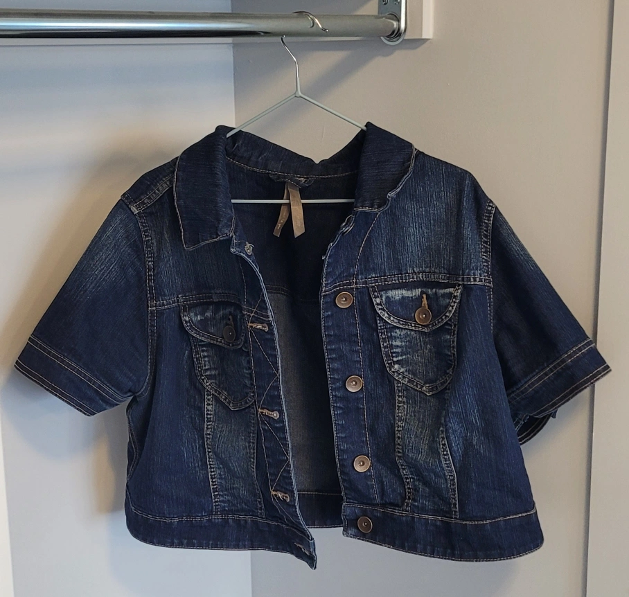 A short-sleeved denim jacket. Button-up details. Two small pockets on the chest. Relaxed fit. Throwing this jacket on can really tie your outfit together.