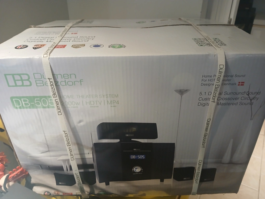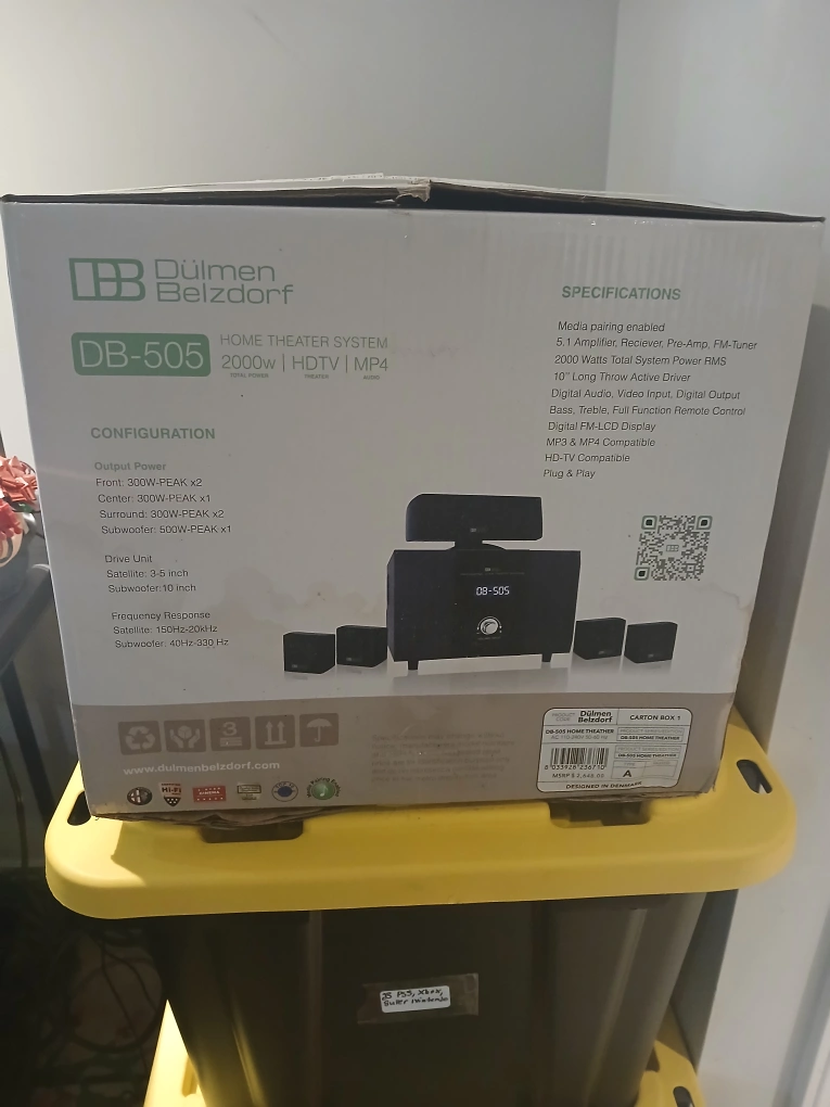 Experience immersive audio with the Dulmen Belzdorf DB-505 Home Theatre System, boasting a powerful 2000W output, HDTV compatibility, and MP4 playback for a complete entertainment solution.