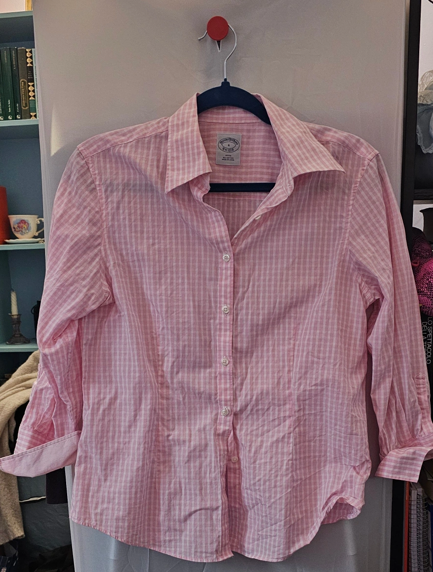 Vintage Brooks Brothers classic button-up shirt in perfect condition. Pink and white gingham pattern.