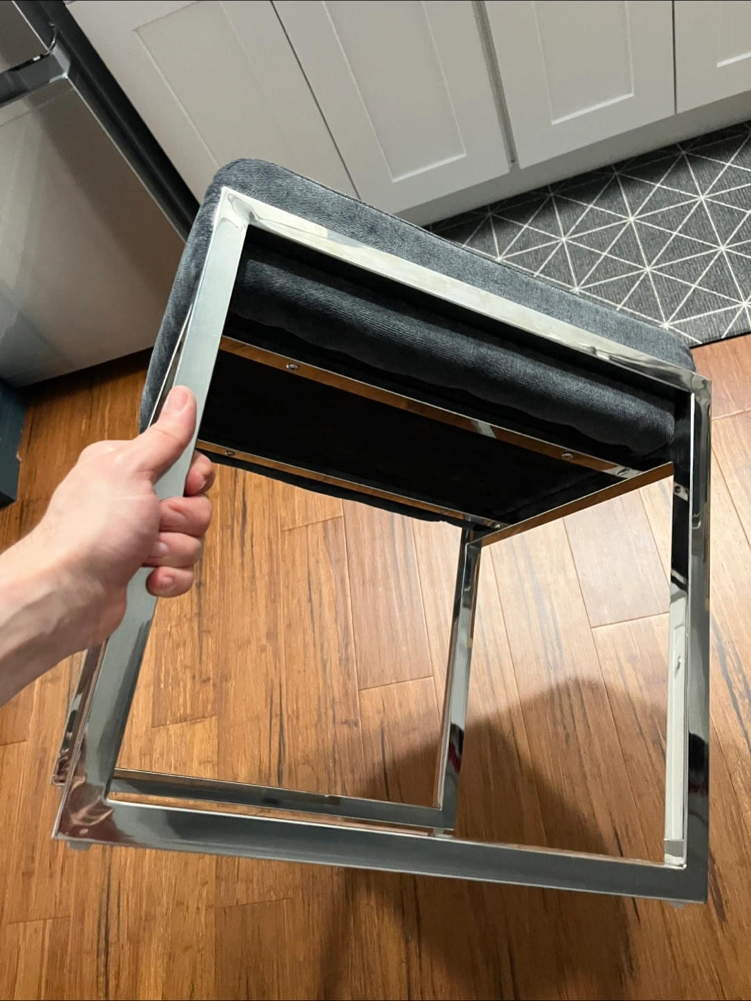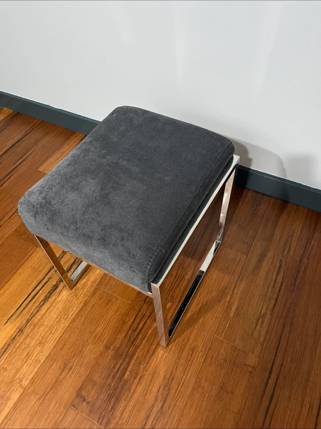 Gray Ottoman Seat Stool Foot Chair Chrome