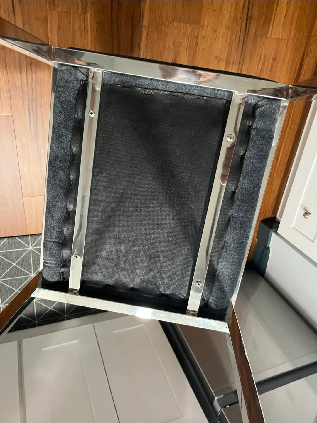 For sale in excellent condition a Grey Ottoman Seat Chair Fabric Stainless Steel- Chrome plating